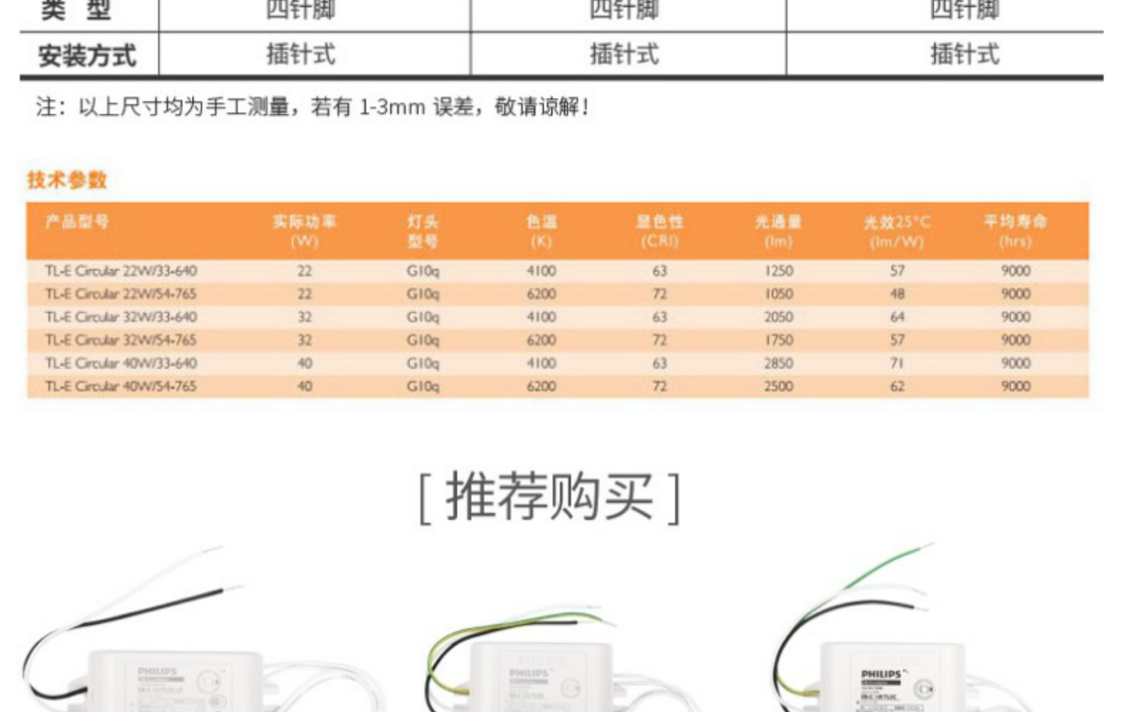 Лампа люминесцентная Philips TL-E Standard G10q T8, белый свет, 22W/32W, энергосберегающая