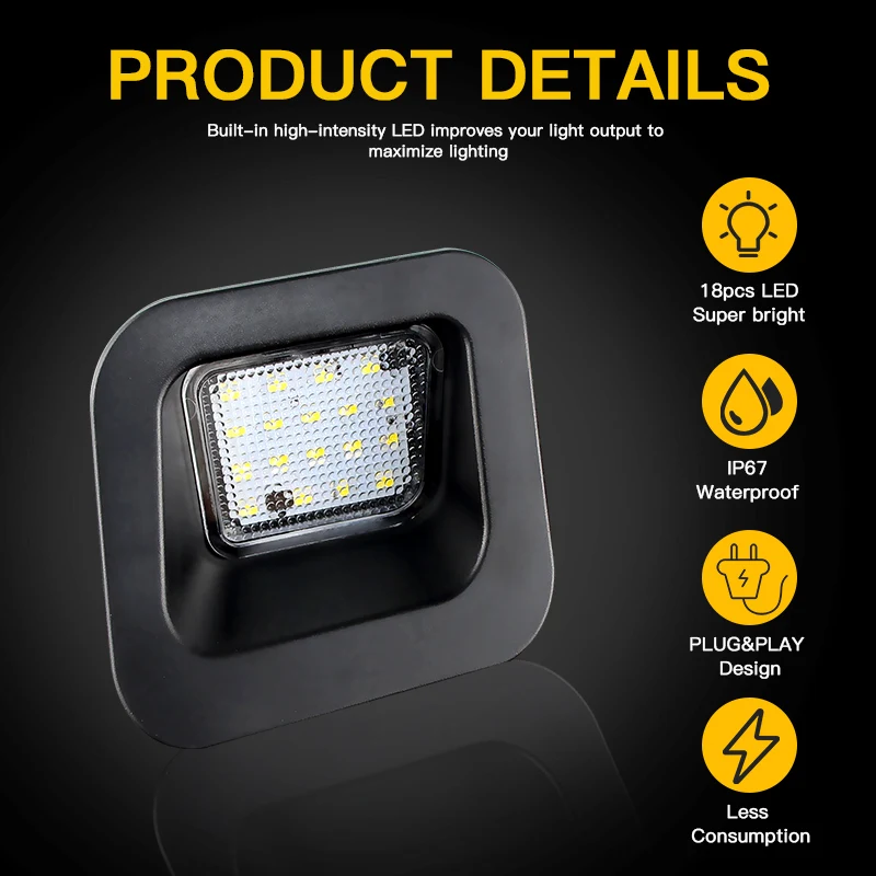 专车汽车LED牌照灯灯,自带CANBUS解码功能,无需改装原车线路,直接拆除原车上的灯具,再装上本产品即可,即插即用,无损安装,简单便捷。