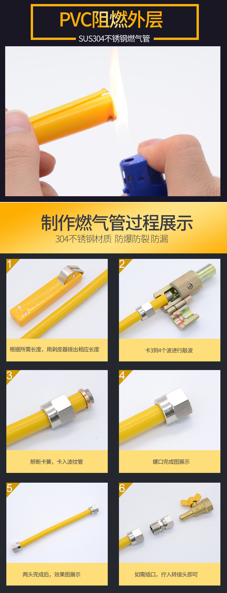 304 газовая труба из нержавеющей стали бытовой взрывозащищенный газовый сильфон для природного газа 3 точки 4 точки 6 газовый металлический шланг