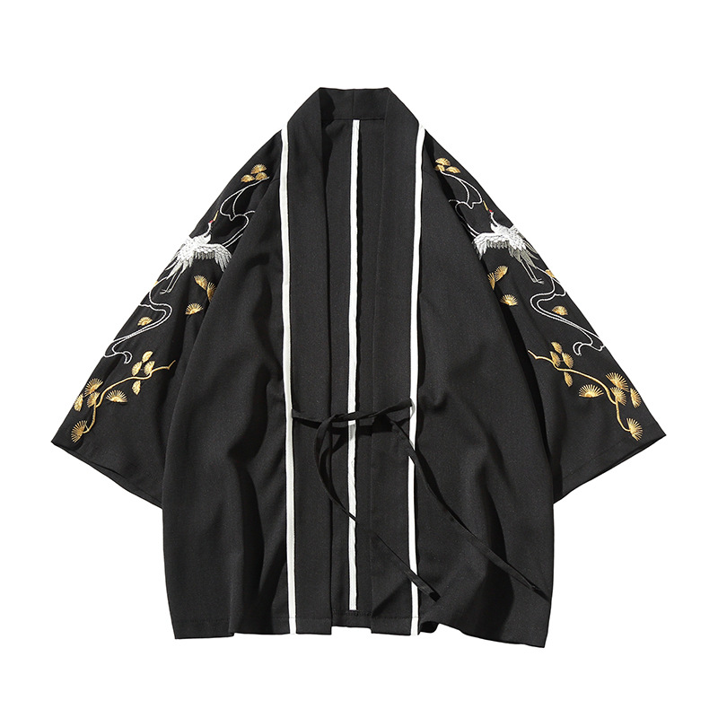 Мужской топ с вышивкой журавля в китайском стиле, укороченный топ с рукавами, мужской модный кардиган, тонкая Китайская одежда, мужская куртка оптом