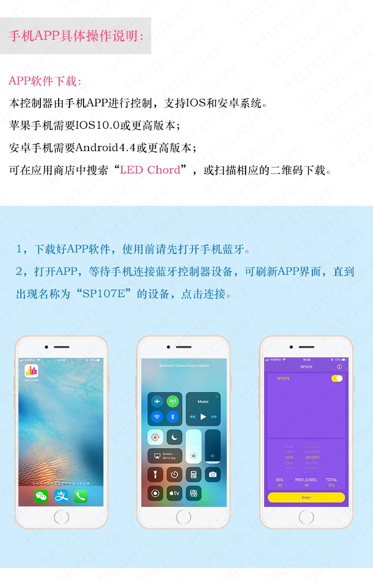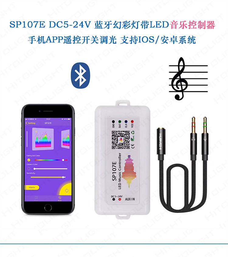 Xilai Light SP107E Smart LED Bluetooth музыкальная Волшебная цветная полноцветная световая полоса 2811/2812 контроллер DC5-24