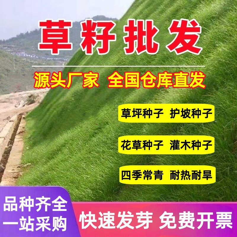 说明:复绿防尘草,护坡卫士,这两个品种由野草种子混合而成,耐热耐旱,根系发达,经济实惠,可以用来护坡复绿,工地防尘,矿山复绿,河道护坡。