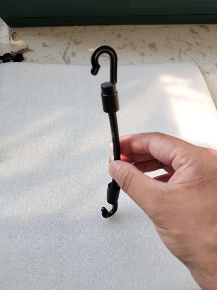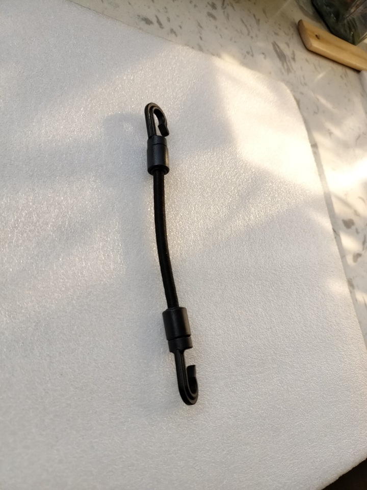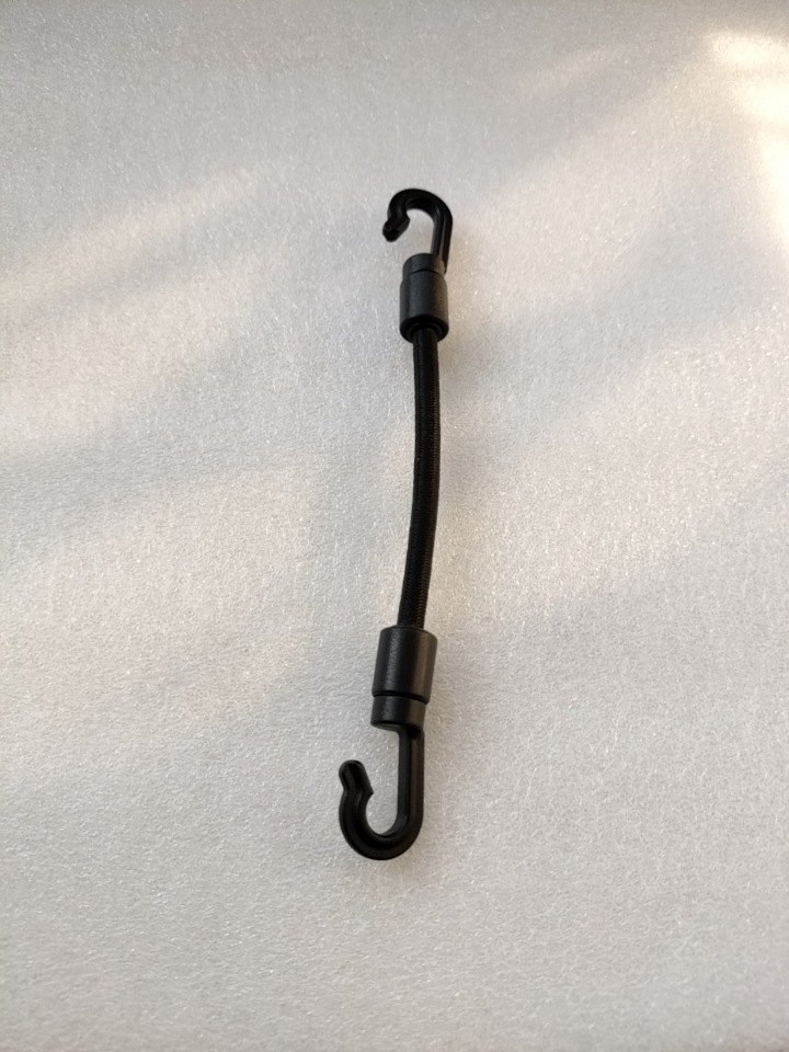 3、将6毫米绳用POM无挡挂钩安装在裁切好的弹力绳两端。