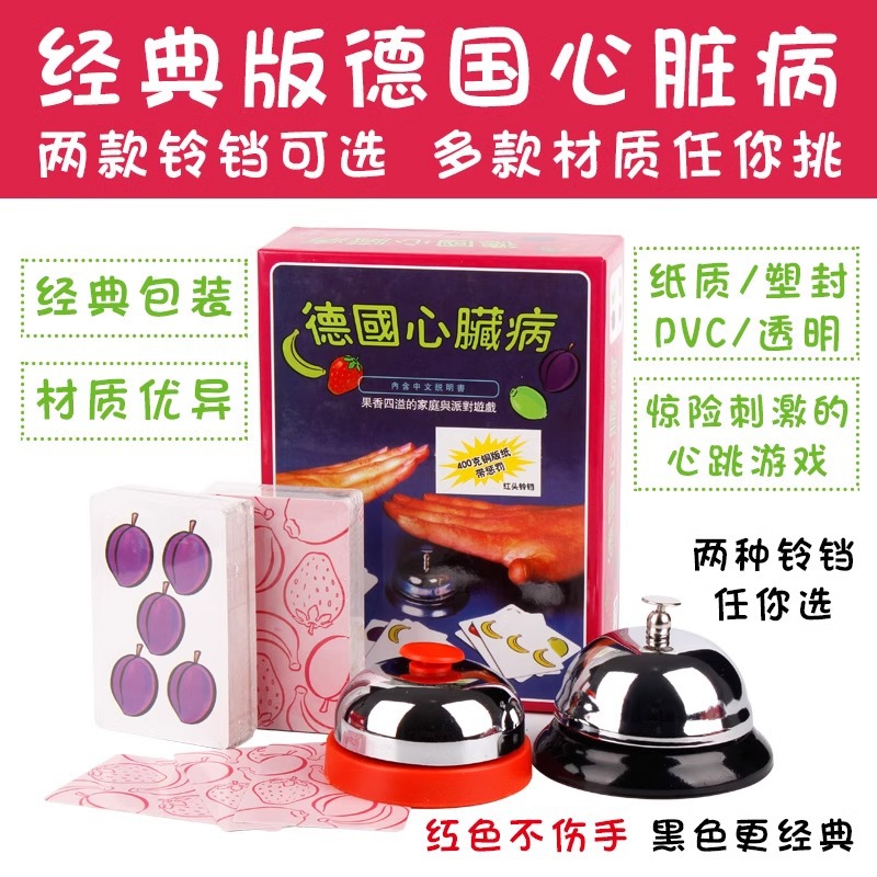 Немецкая болезнь сердца (не вредит колокольчикам); Немецкие болезни сердца (не вредны для колокольчиков) пластиковая упаковка; Немецкая болезнь сердца (Металлический колокольчик); Немецкая пластиковая упаковка для сердечных заболеваний (металлический колокольчик); ПВХ пластик Немецкая болезнь сердца (не повредит колокольчик); ПВХ пластик Немецкая болезнь сердца (металлический колокольчик); Deluxe Iron Box Edition Немецкая болезнь сердца; Роскошная железная коробка немецкой версии Heart Disease (пластиковая герметичная); Green Box Немецкая обновленная версия «Болезнь сердца»; Green Box German Heart Disease Upgraded Edition (пластиковая упаковка); Железный ящик Немецкая болезнь сердца (роскошное водонепроницаемое издание); Немецкий бумажный колокольчик для лечения сердечных заболеваний Dazong