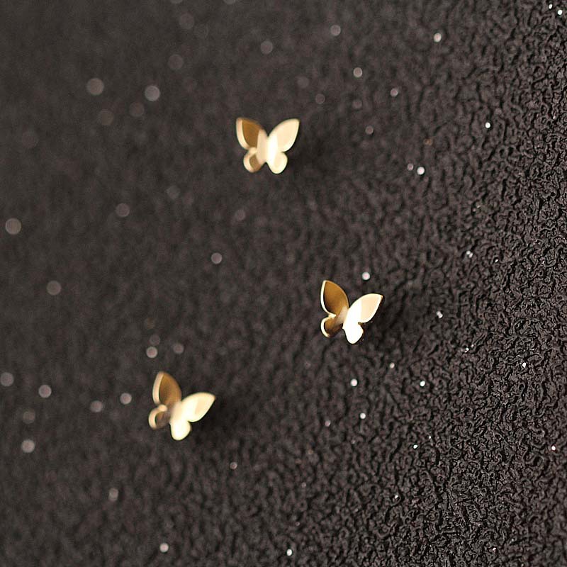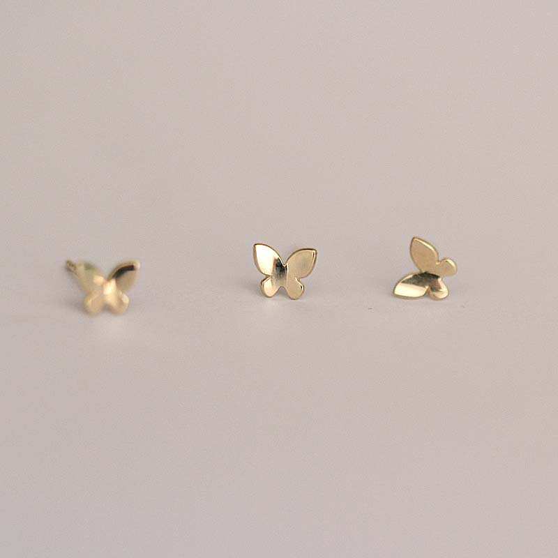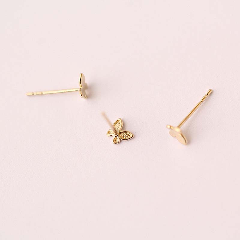 Чистое золото 14K Light Plate Мини Блестящие серьги-бабочки Серьги в японском и корейском стиле