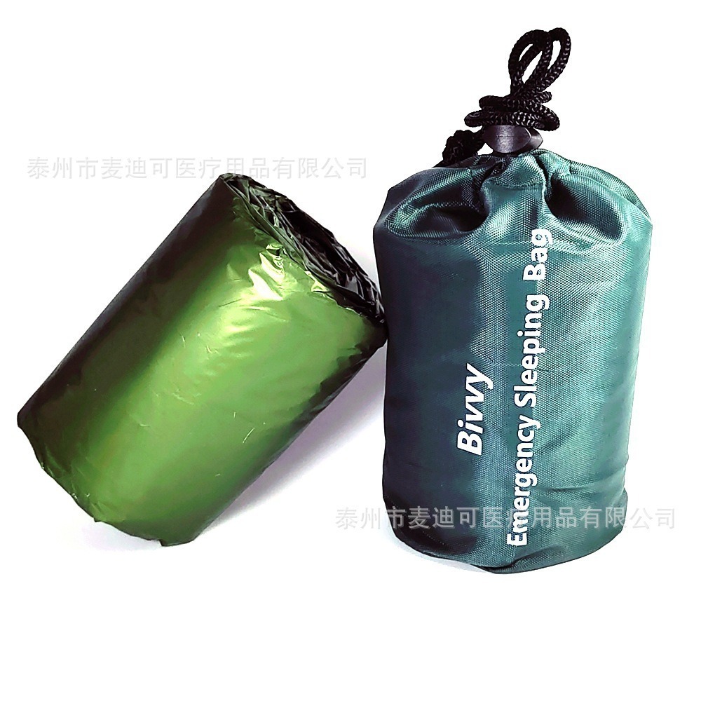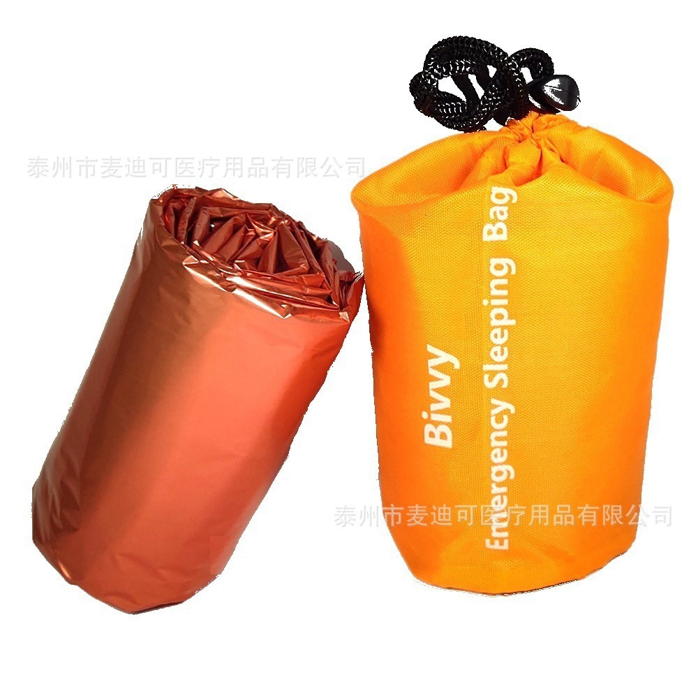 PET镀铝膜应急睡袋比PE睡袋具有更好的耐撕性能,不易划伤,耐存储。使用方便。