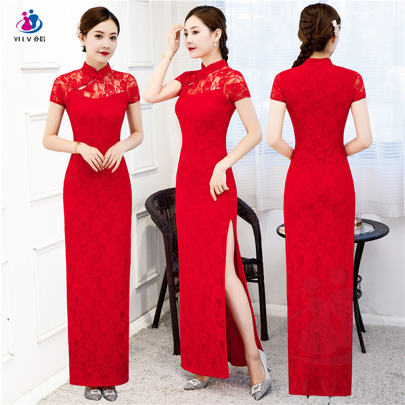 Оптовая Продажа с фабрики Подиум Чонсам женский 2023 летний костюм в стиле ретро с длинными короткими рукавами мать плюс размер улучшенное платье