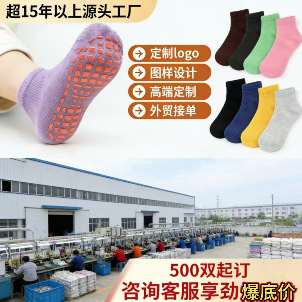 儿童防滑袜”“蹦床袜”“LOGO定制儿童防滑地板袜LOGO定制批发厂家直供蹦床乐园专用点胶防滑亲子袜