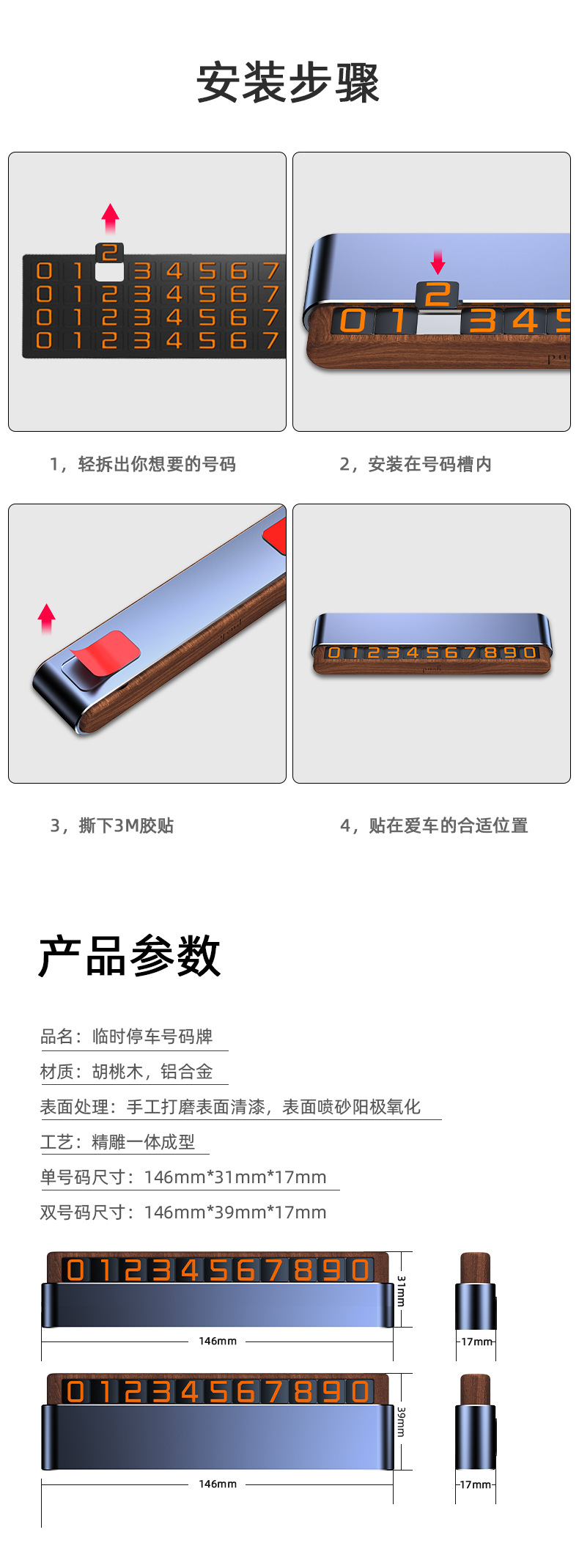 Временный парковочный знак, движущийся номерной знак, телефонный знак, высококачественный автомобильный подарок из орехового дерева своими руками, двойной номерной логотип