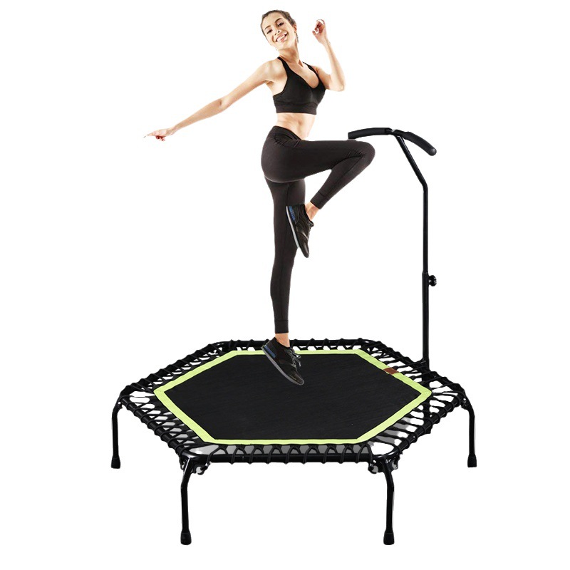 Диагональный 48-дюймовый шестиугольный фитнес-батут Внутренний бытовой 42-дюймовый бесшумный прыгун с подъемным подлокотником