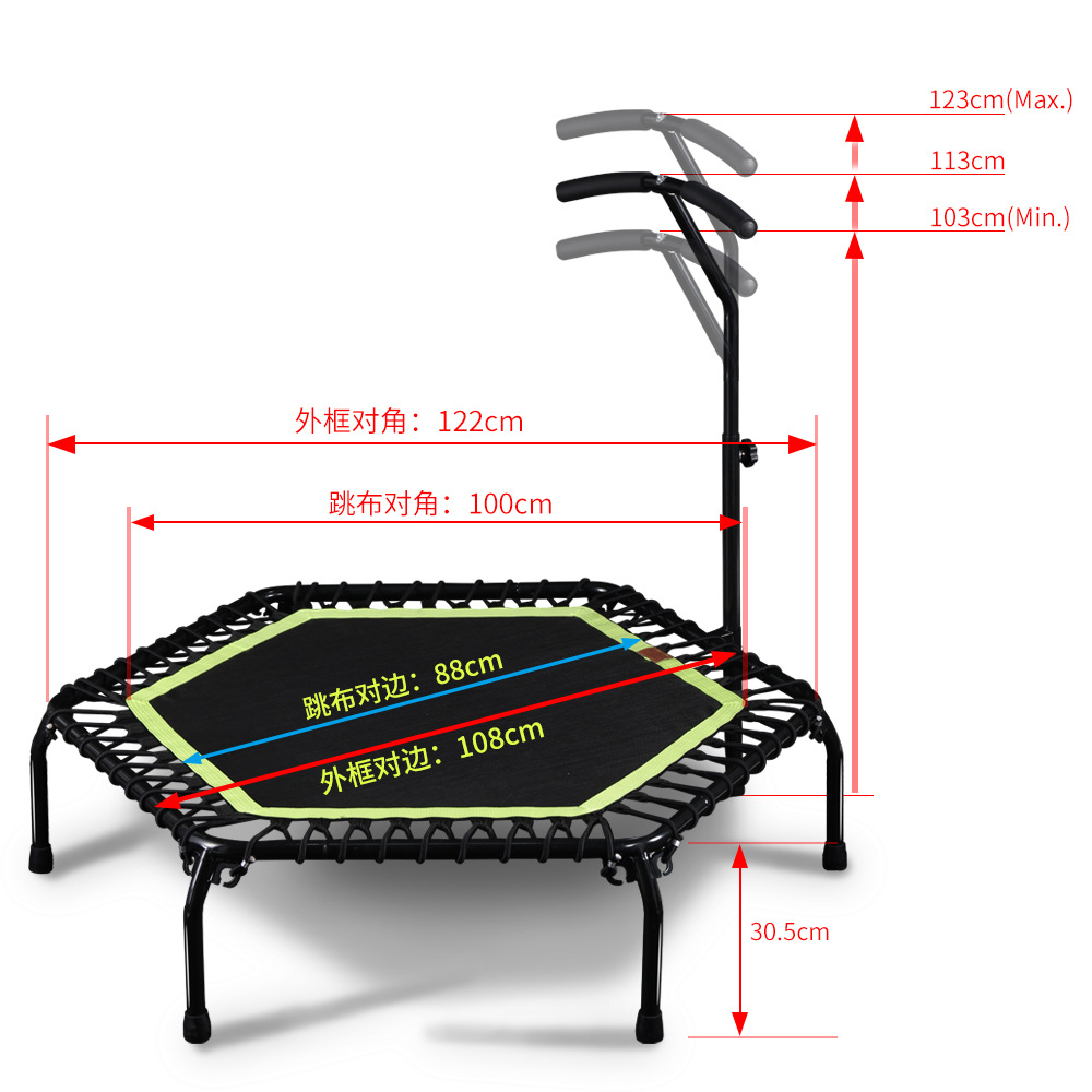 此款为家用健身蹦床,配可升降调节扶手