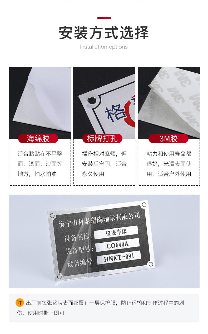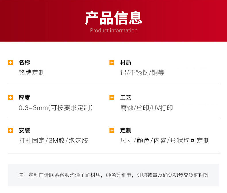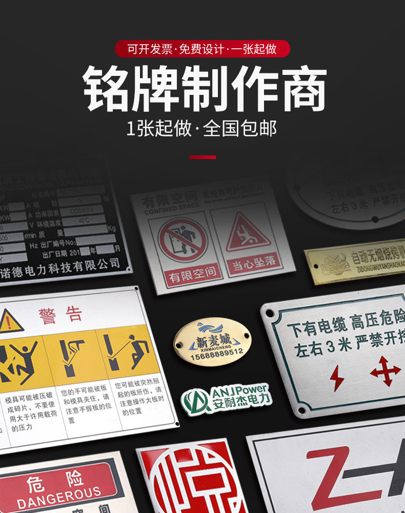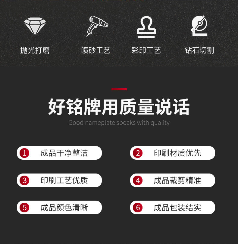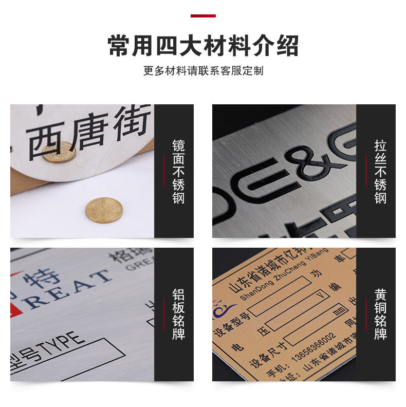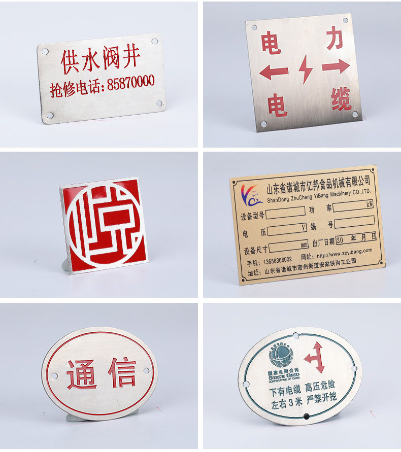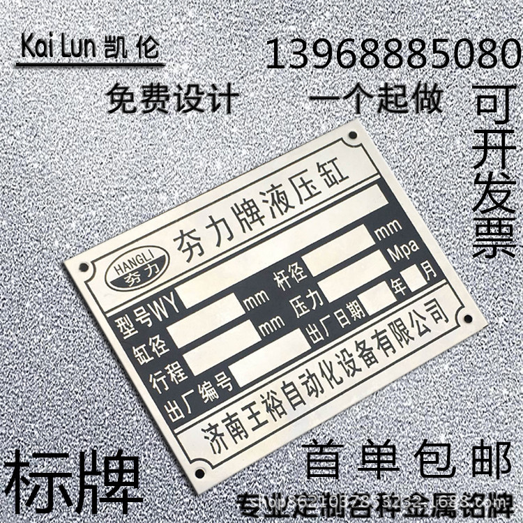平阳欧罗曼贸易有限公司专业生产铝标牌、不锈钢标牌、铜标牌、蚀刻铭牌、铝牌、不锈钢铭牌、金属加工、丝印腐蚀钛金标牌等产品专业生产加工企业,拥有完整、科学的质量管理体系苍南县龙港凯伦标牌厂 的诚信、实力和产品质量获得业界的认可。欢迎各界朋友莅临参观、指导和业务洽谈。