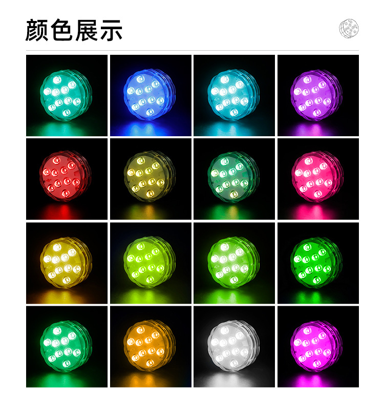 跨境亚马逊 LED遥控潜水灯16色RGB高亮鱼缸灯防雨水电子蜡烛灯