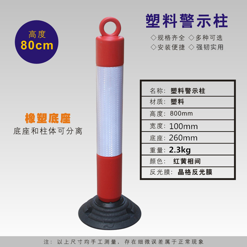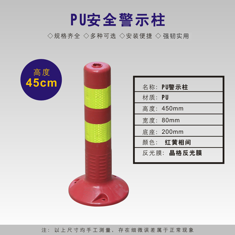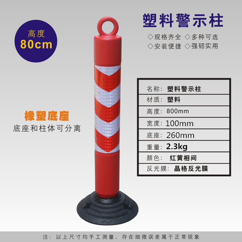 Пластиковая дорожная оградительная колонна из полиуретана для разделения полос движения, с эластичным светоотражающим элементом, красно-белая, защитная, противоударная