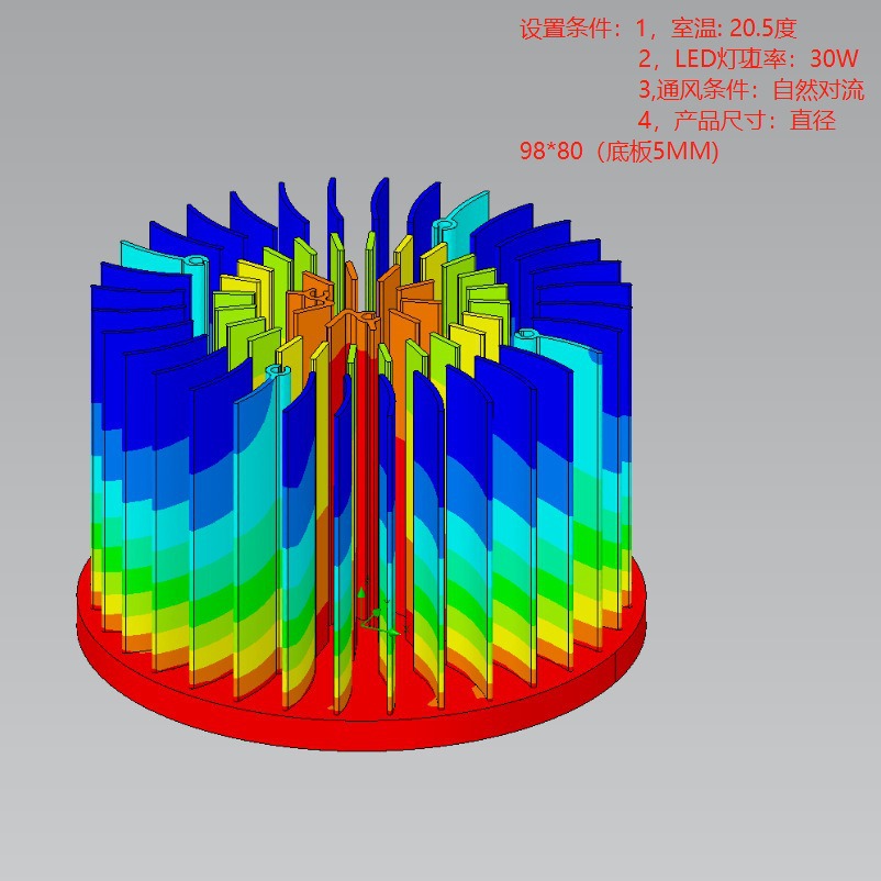 b、而同为一体式的压铸产品材质的导热系数只有96m.k,而且叶片不能太薄太多,增加产品重量;压铸产品表面不能做阳极处理,只能烤漆,烤漆表面会影响热量散发出来