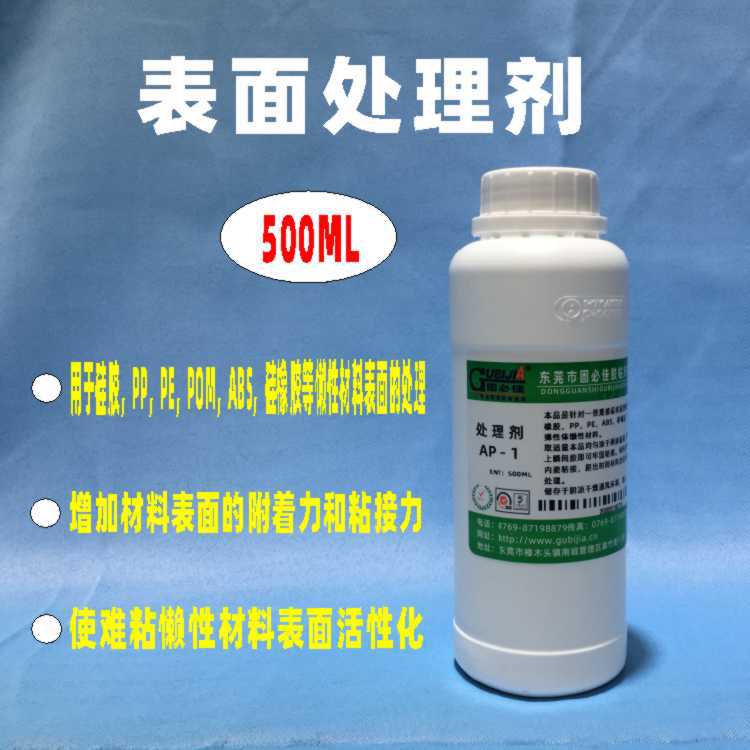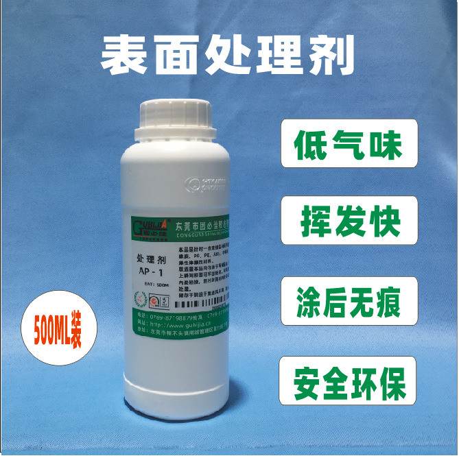 一、产品简介及用途 处理剂AP-1是烷烃类易挥发,防明火,低气味产品。主要应用于各类软性多油产品的表面处理,特别针对软性硅胶懒性表面处理后粘接更牢固而设计。适量之处理剂均匀涂于硅胶接著面上,然后涂上瞬间胶,再接合即可,。