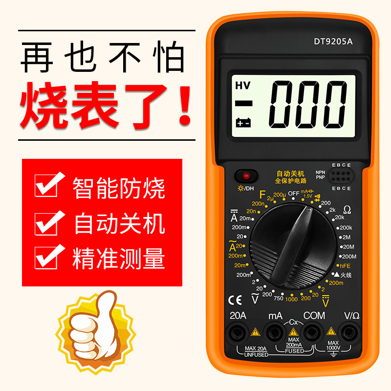 DT9205A智能防烧数显数字万用表 家用手持式仪表电工仪器万用表dt9205a电工仪表 直流电流表电工仪器家用数显数字万用表万用表 电能仪表 电压测量仪表 电阻测量仪表 家用电工仪器啊 直流电流表 智能数字万用表 数字电压表 数显电流表 袖珍万用表 手持式电工仪器仪表 电压电流测量 自动量程万用表 测电笔 lcd液晶显示屏 家用全自动测量万用表