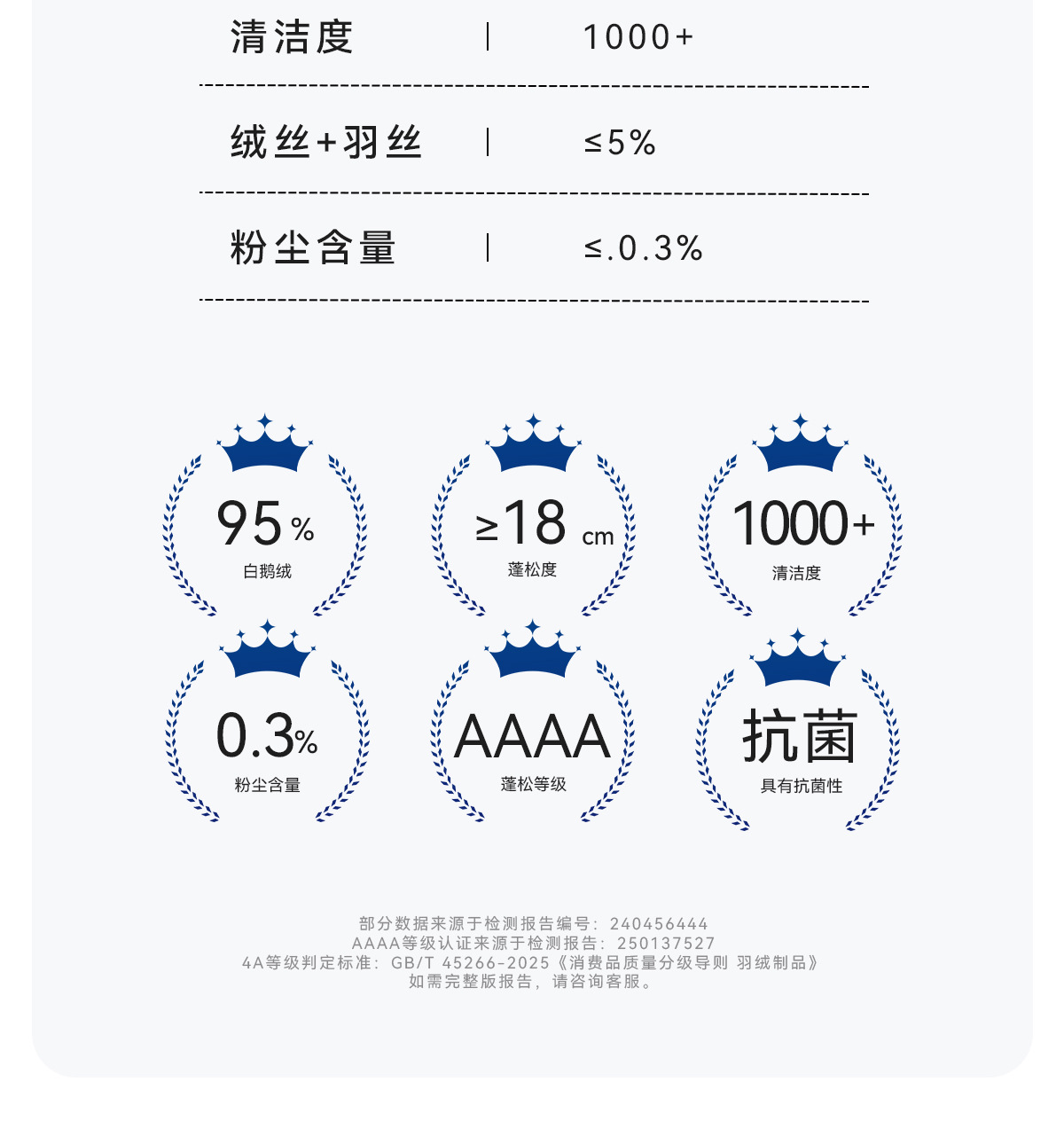 4А класс, 95% белый утиный пух; Класс 4А 95% белый гусиный пух