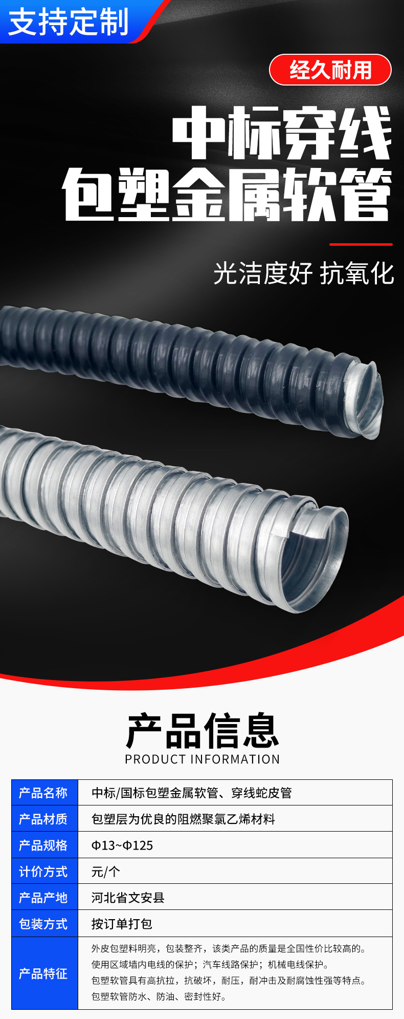 Металлический шланг с пластиковым покрытием типа P3, огнестойкая труба 8-125, труба с пластиковым покрытием, металлический шланг, кабельная трубка, «змеиная кожа».