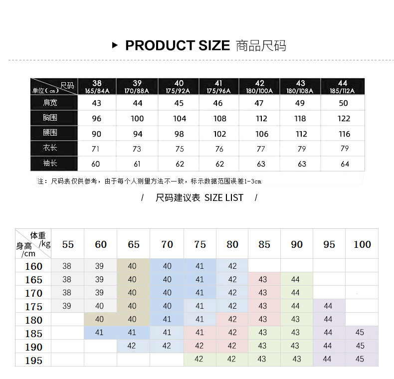 680 белый с длинными рукавами; 681 синий длинный рукав с саржем; 682 Розовый с длинными рукавами в твите; 686 белый плоский длинный рукав; 687 синий плоский длинный рукав; 688 розовый плоский длинный рукав; 689 белый воротник с длинными рукавами; 680-1 белый твил без карманов с длинными рукавами; 686-1 белый плоский без карманов с длинными рукавами; 881 черный твит; 201 синяя сетка; 202 Фиолетовая решётка; 203 синяя широкая полоска; 205 Синяя жаккардовая полоска; 206 Черная полоска; 207 Синяя полоса; 208 фиолетовый в полоску; 901 белые сверлильные пряжки с длинными рукавами; 902 синий бриллиантовый пряжка с длинными рукавами; 903 розовые пуговицы с бриллиантами с длинными рукавами