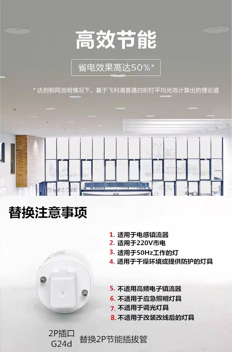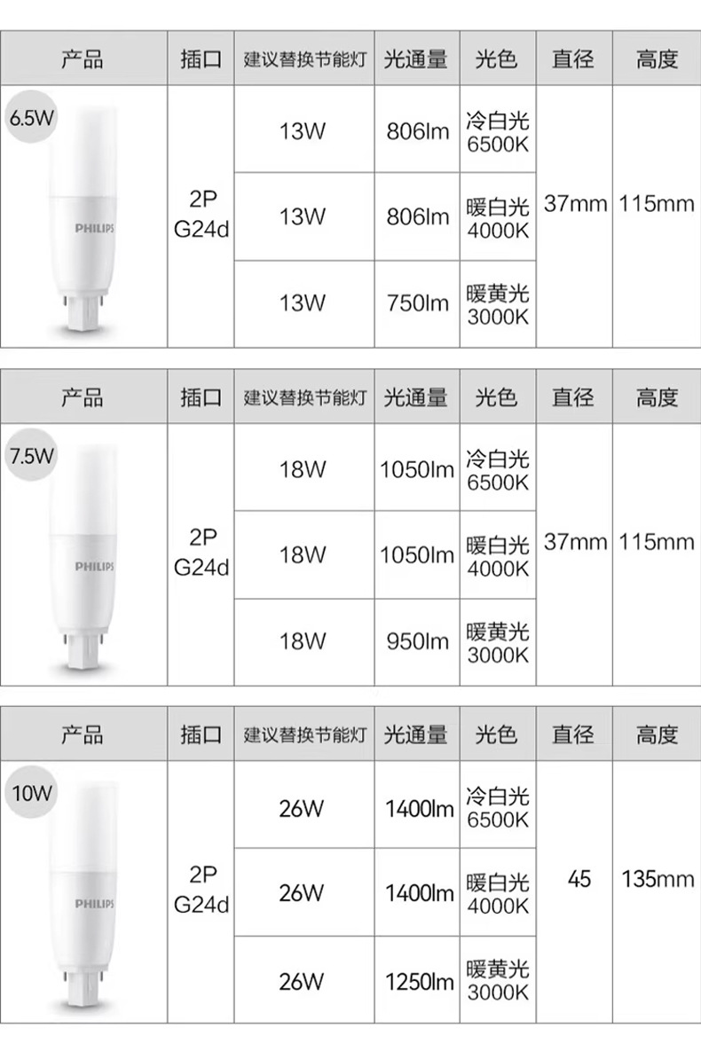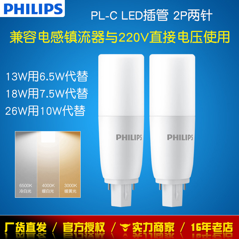 Светодиодная трубка Philips PL-C Трубка для даунлайта Двухконтактная лампа 2P Лампа 7,5w9w вместо энергосберегающей трубки H