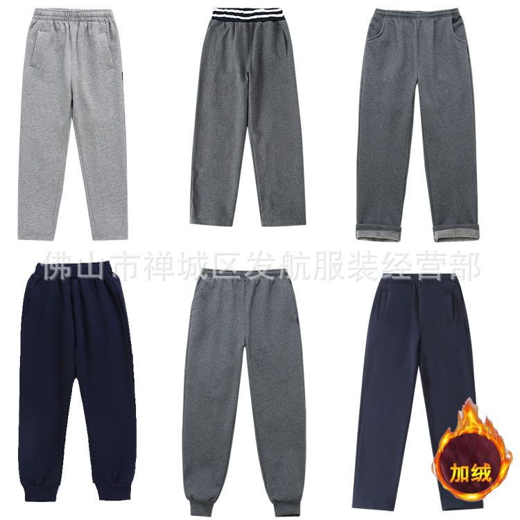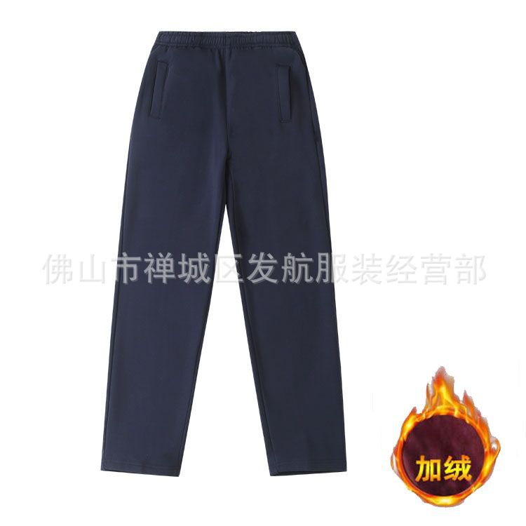 Темно-синие спортивные штаны для мальчиков, школьные штаны для девочек, осенне-зимние детские брюки на флисовой подкладке, брюки для начальной школы, темно-синие