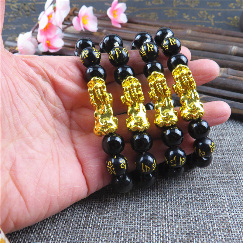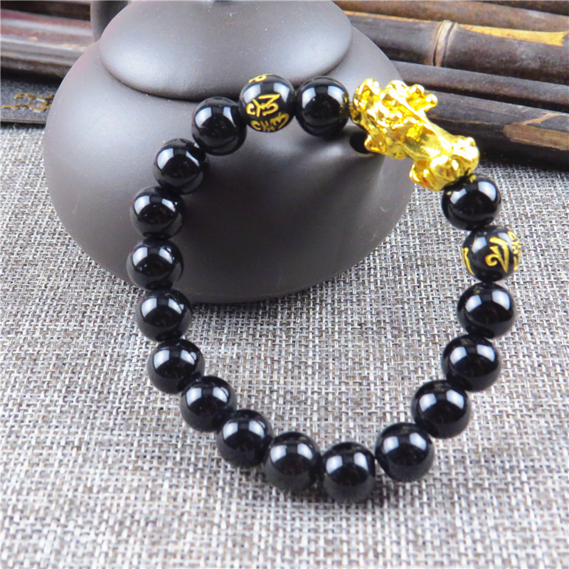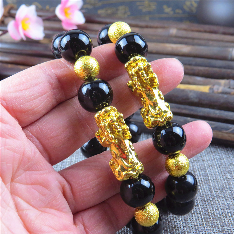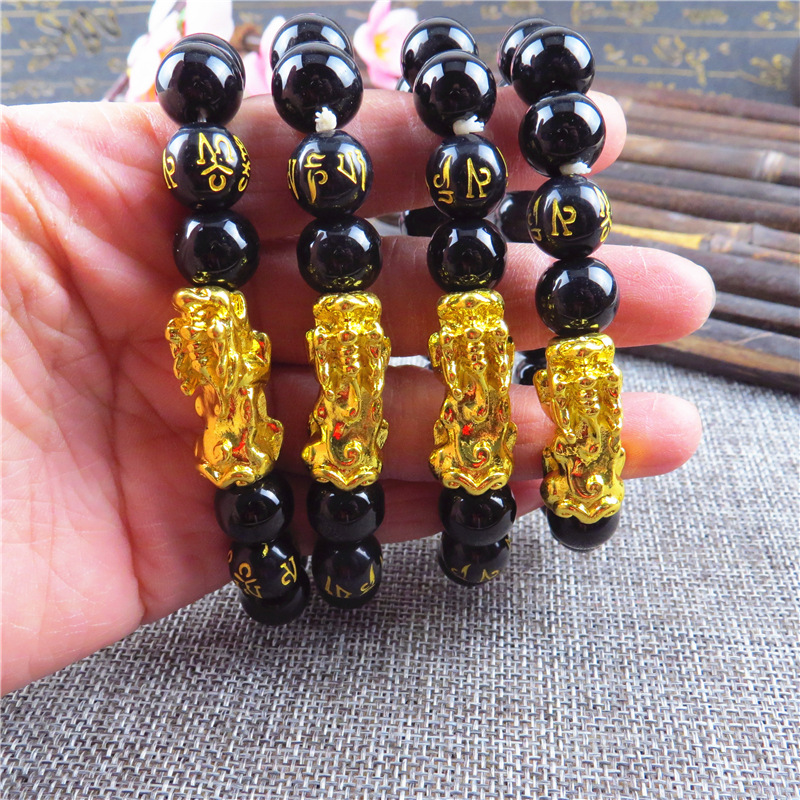 Горячие продажи подарков Золотой имитация обсидиана Храбрый браслет Мужские и женские гальванические золото Храбрый браслет