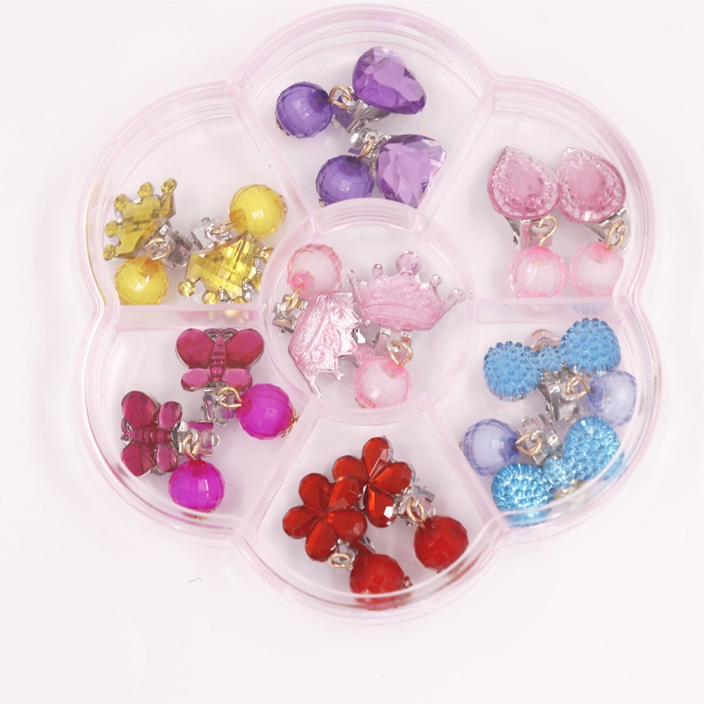 Новые детские зажимы для ушей без пирсинга, подвески для девочек, искусственные серьги, набор в подарочной коробке, акриловые зажимы с имитацией бриллиантов, прямые поставки с фабрики