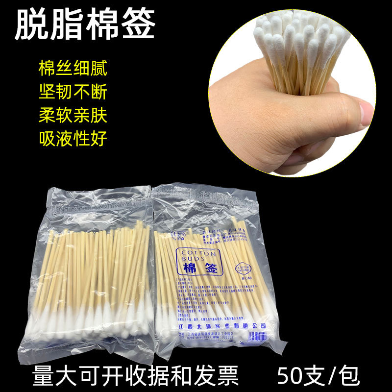 棉头白色,竹棒光滑坚固,有弹性,吸水性强,用于对皮肤消毒及外科敷料.