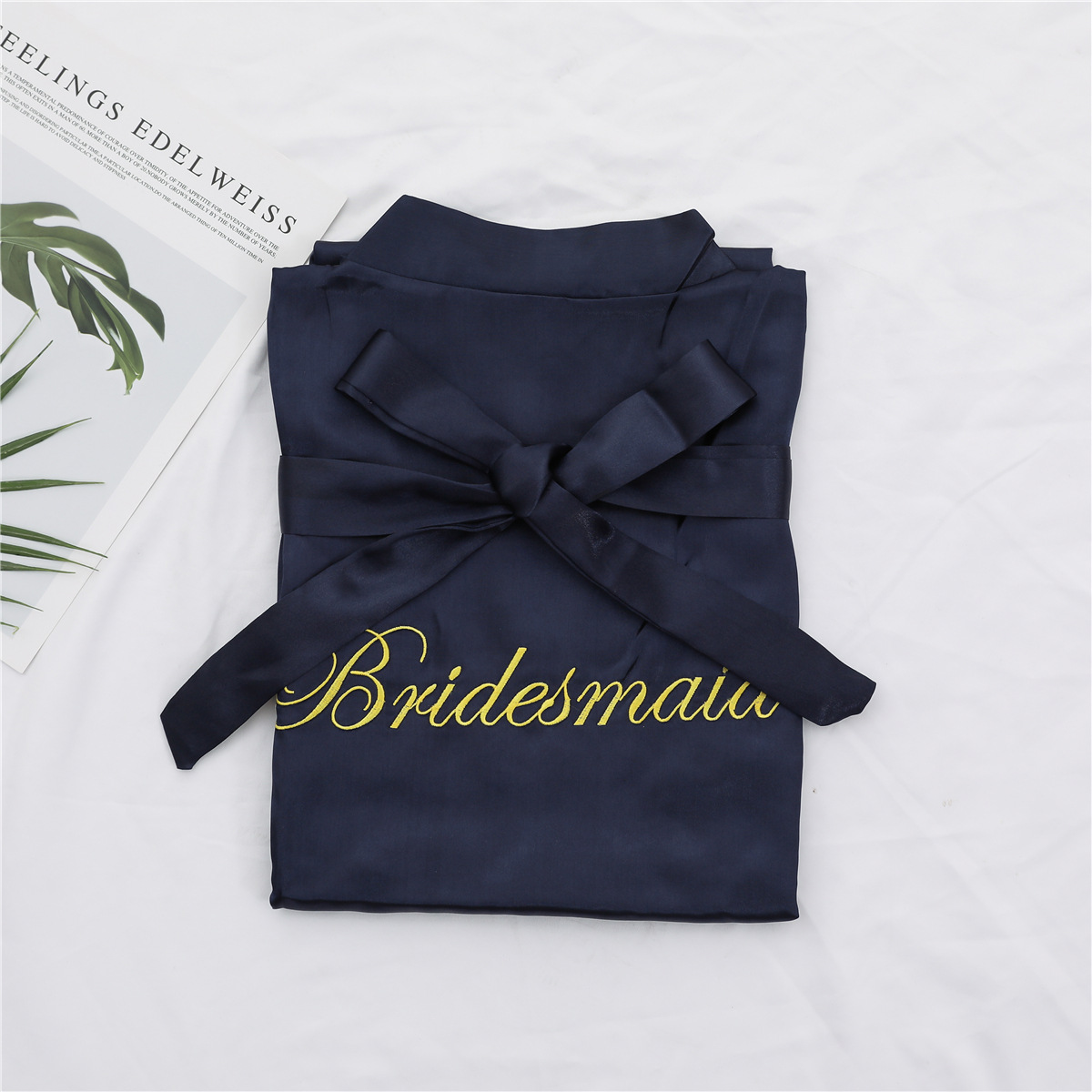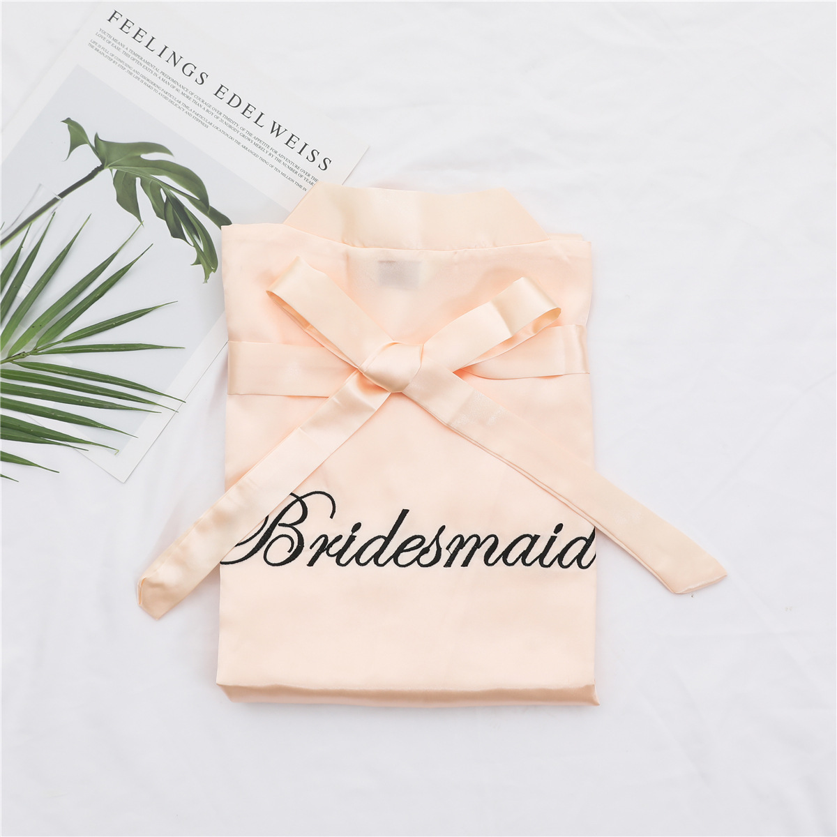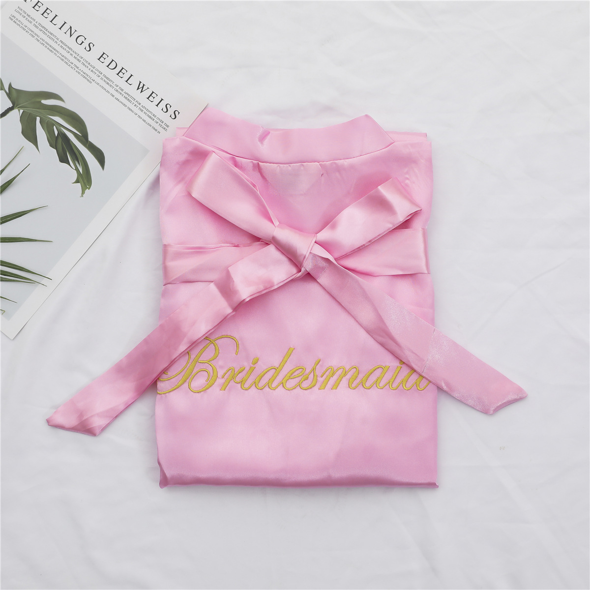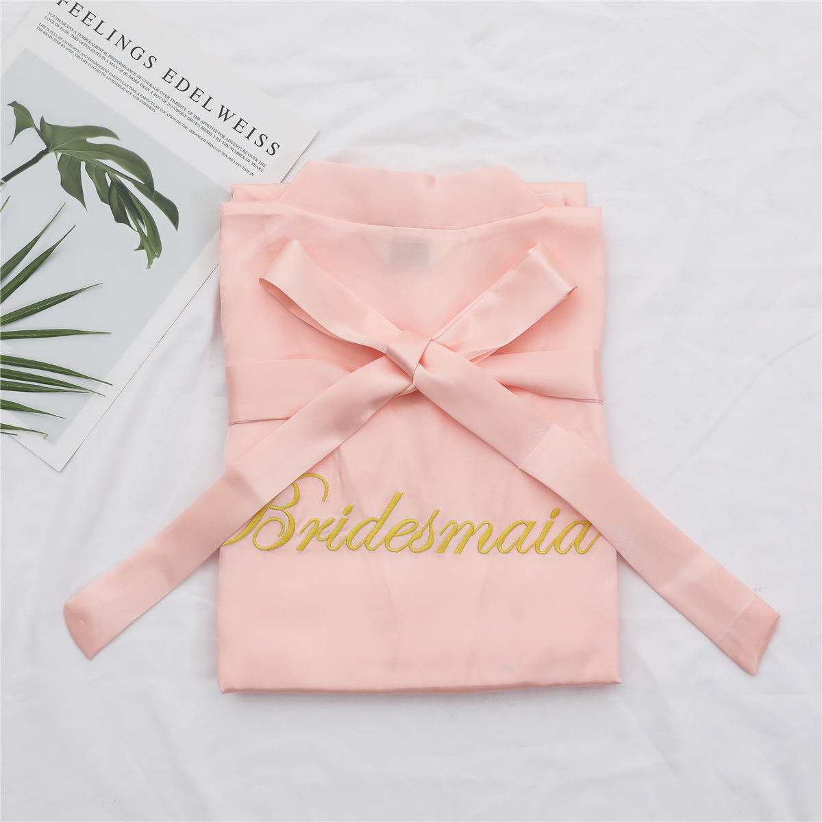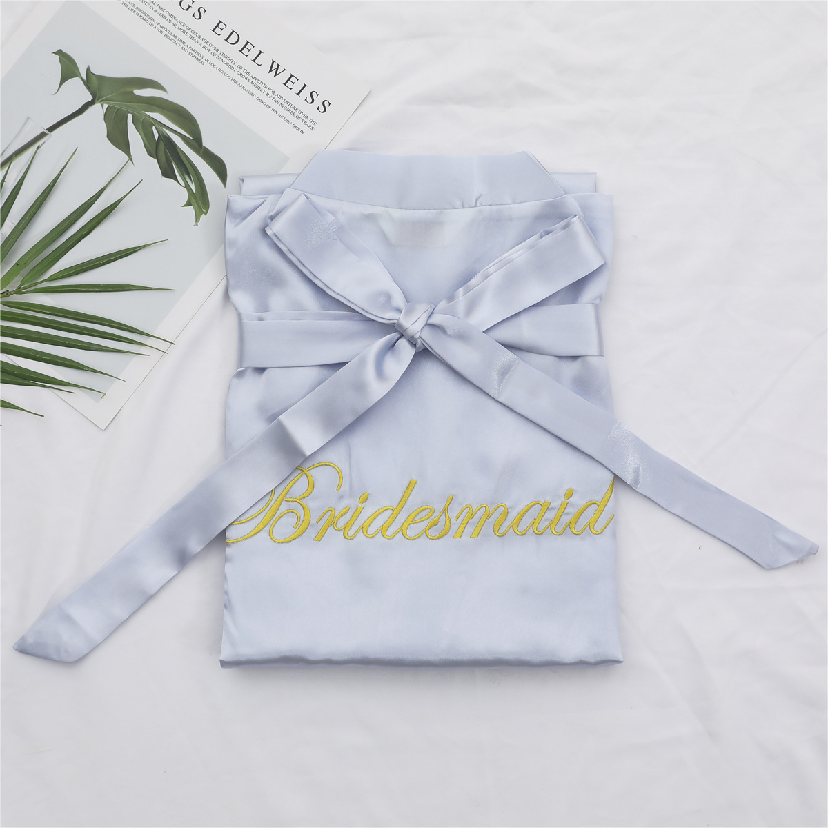 美叶丝达纯色伴娘团新娘绣花婚庆晨袍