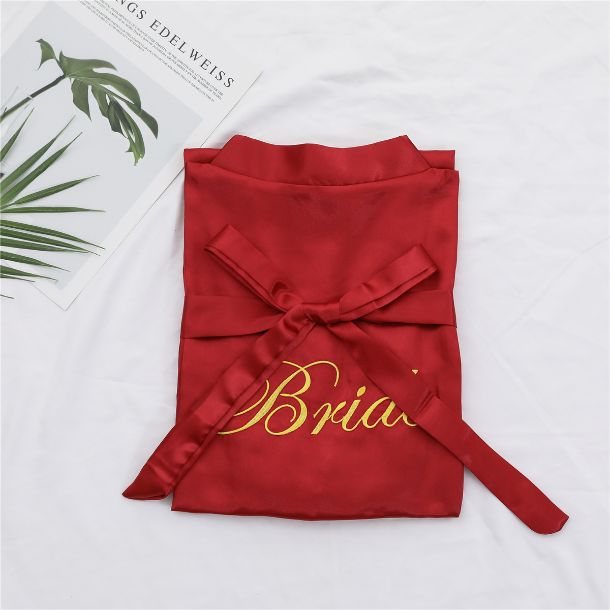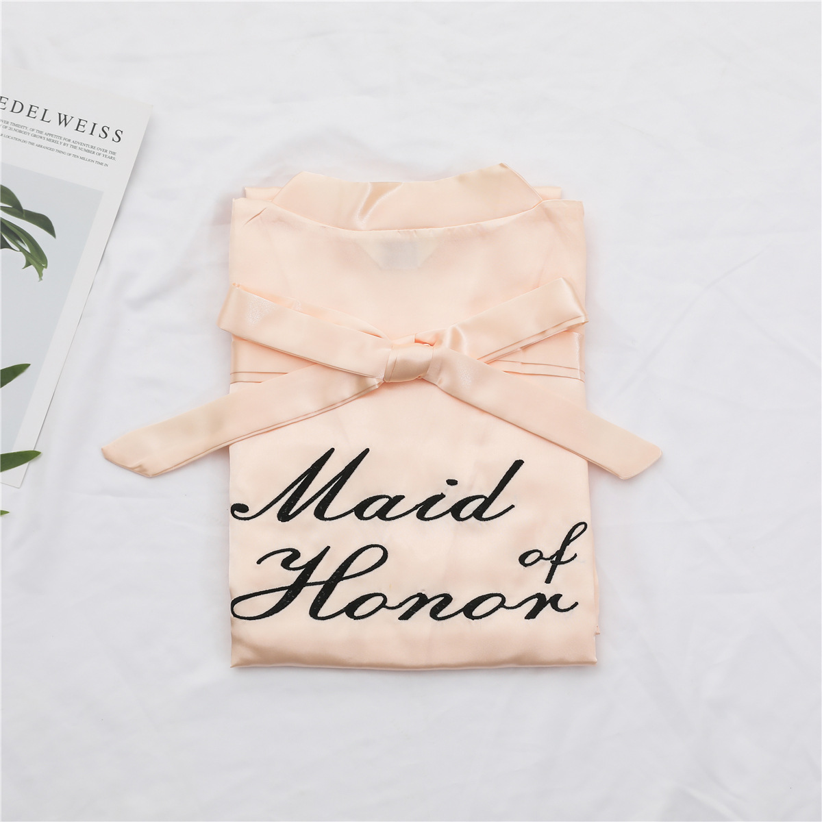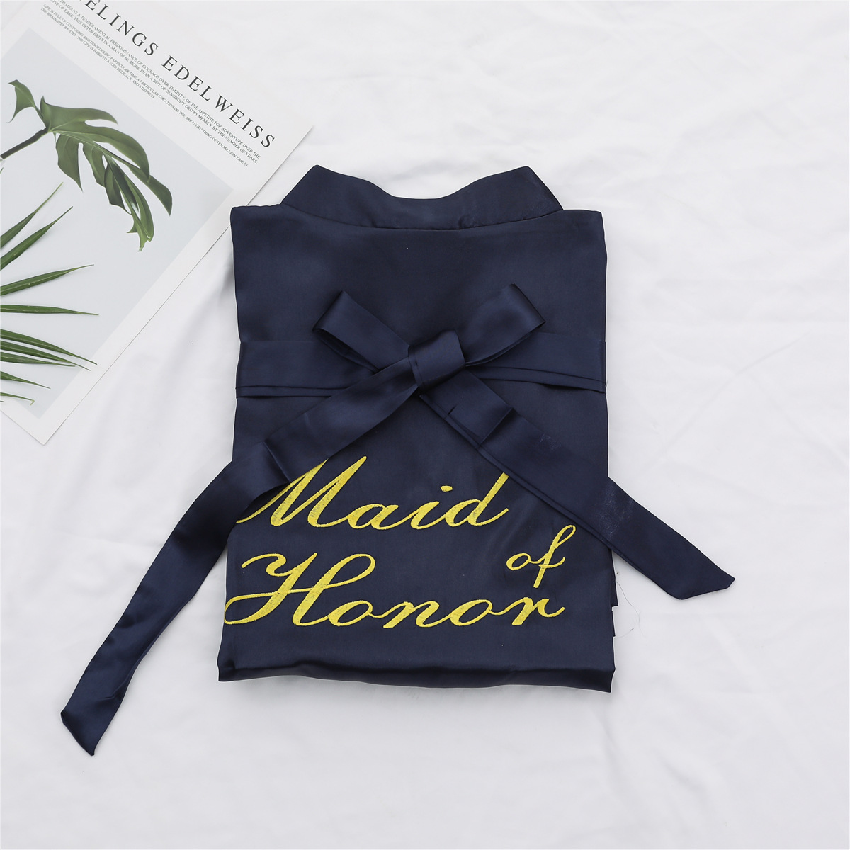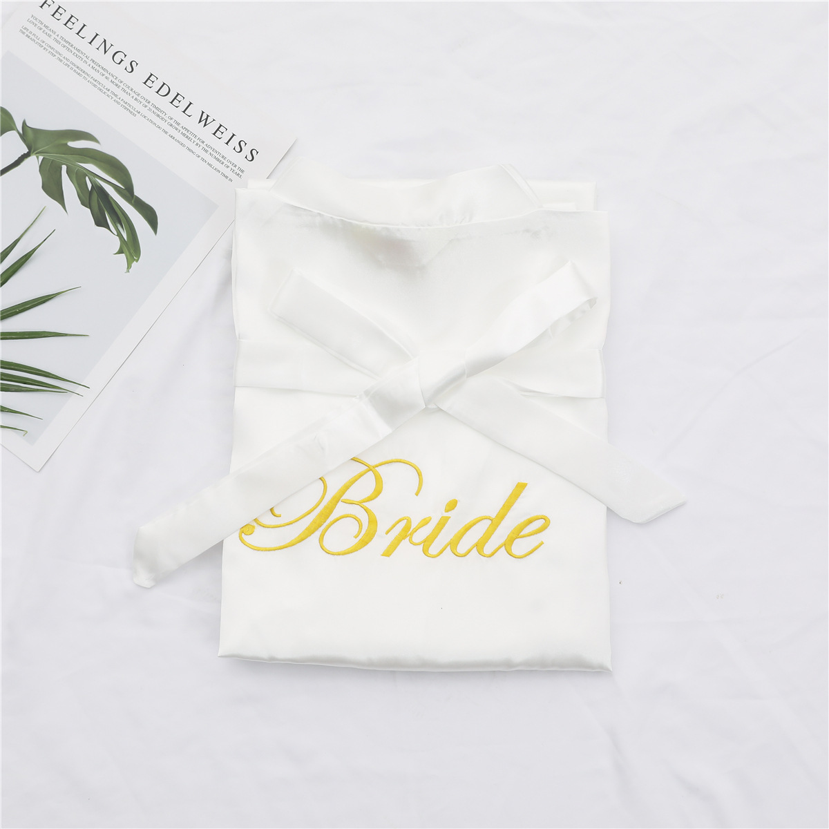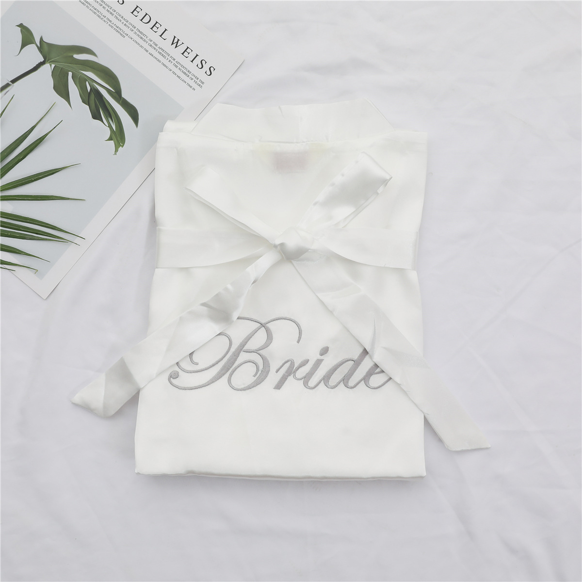 美叶丝达纯色伴娘团新娘绣花婚庆晨袍