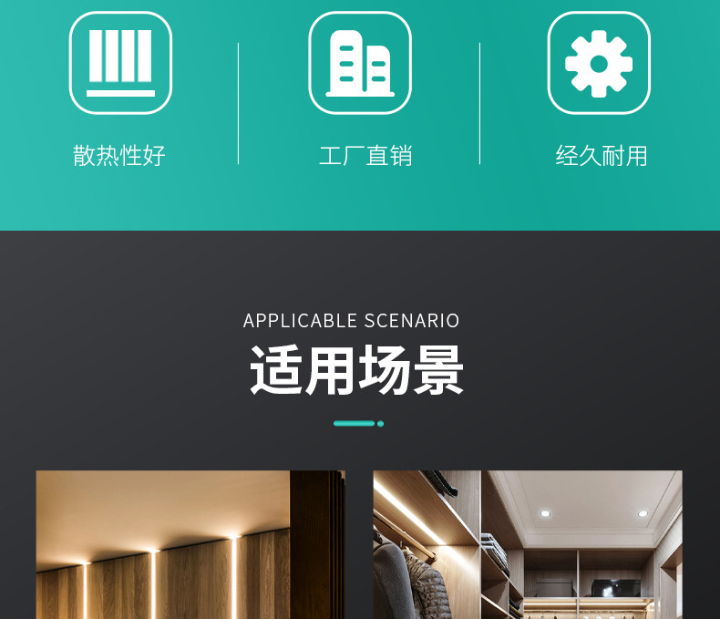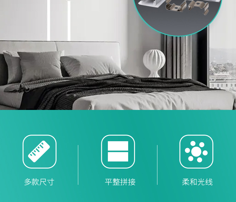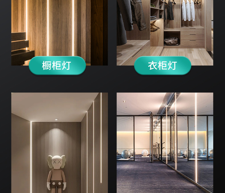 Линейный светильник: алюминиевый профиль, скрытый монтаж, для шкафов и гардеробов, с пазом для крепления.