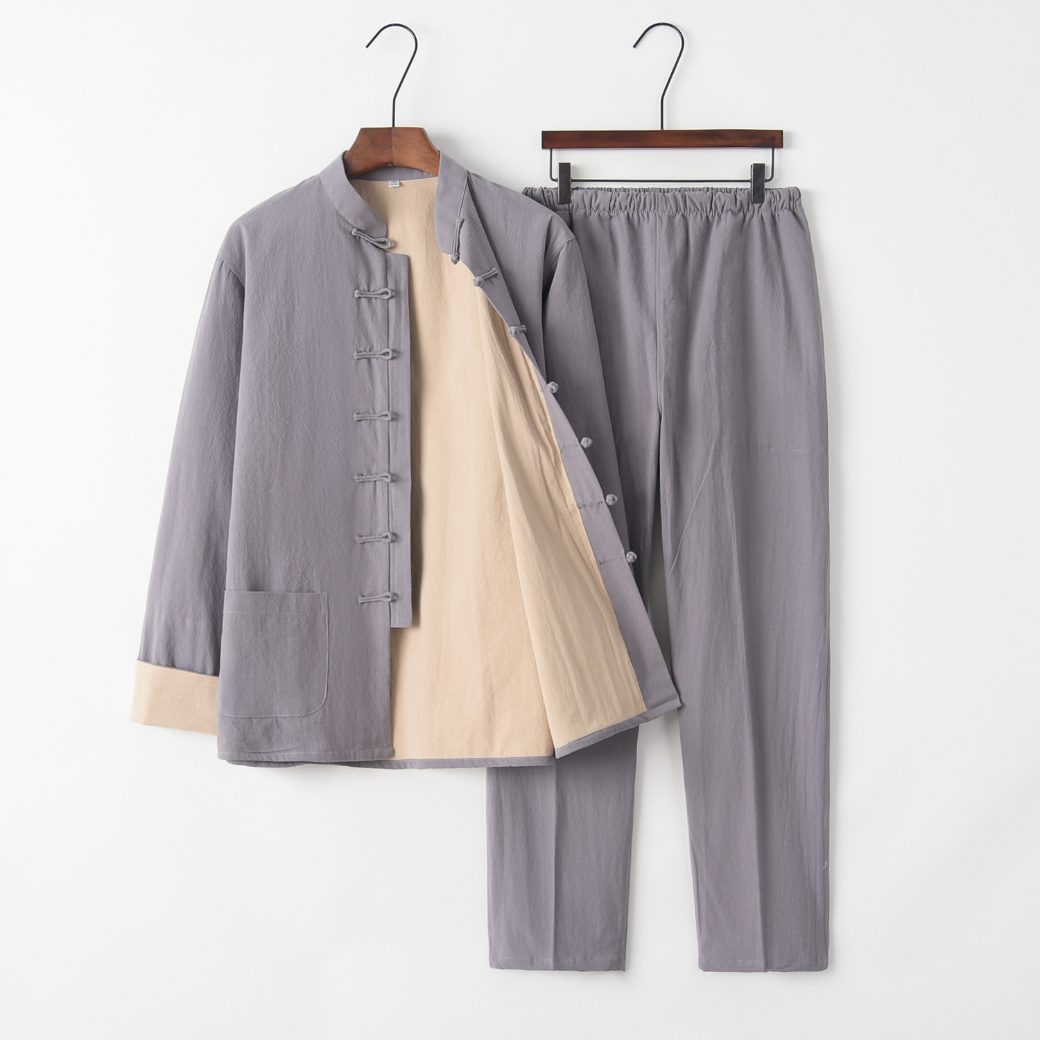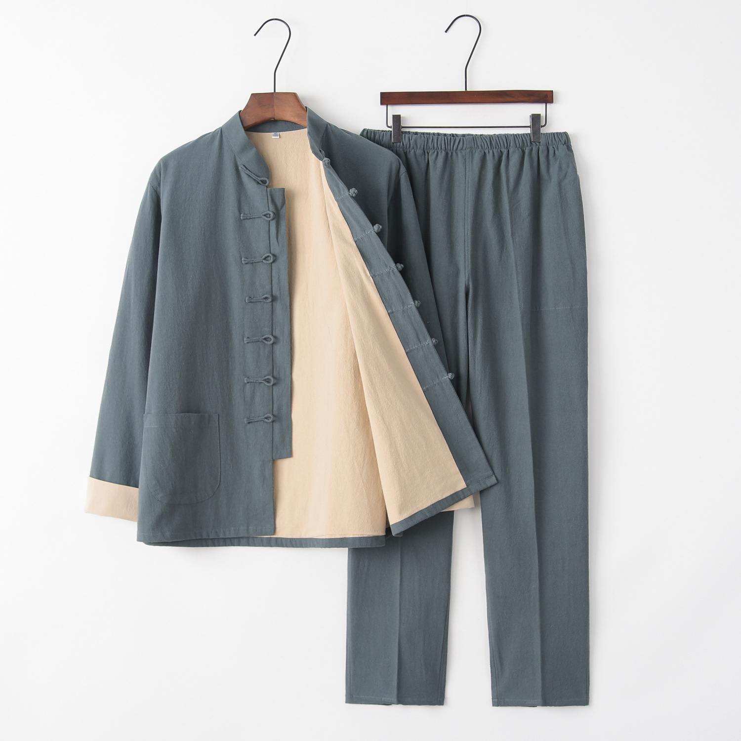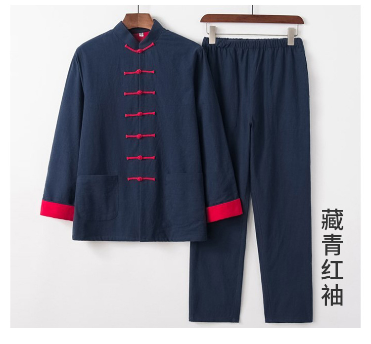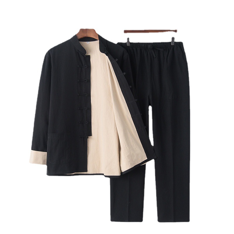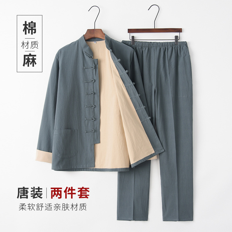 Мужской костюм Тан, костюм Ханьфу, одежда из хлопка и льна для мирянина, китайский стиль, куртка для пожилых людей, весенне-осенняя одежда на пуговицах, одежда в стиле Дзен, одежда для мужчин среднего возраста