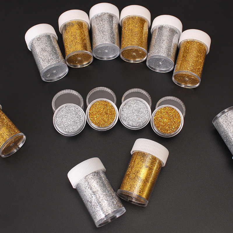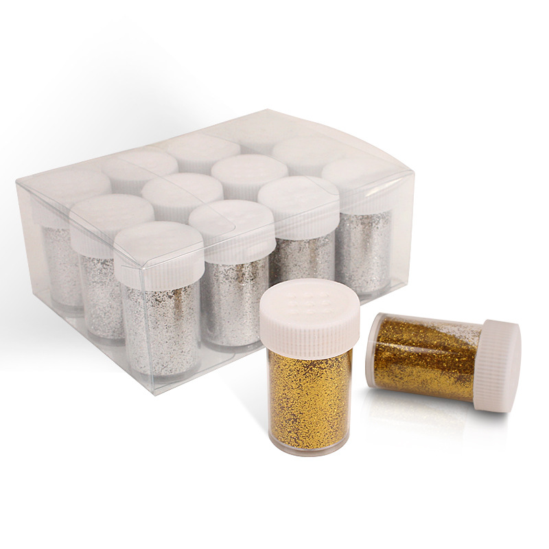 12 бутылок/коробка золотого цвета; 12 бутылочек/коробка серебро; 12 бутылочек золота + серебро смешанные; Блестящий порошок, одинарный флакон