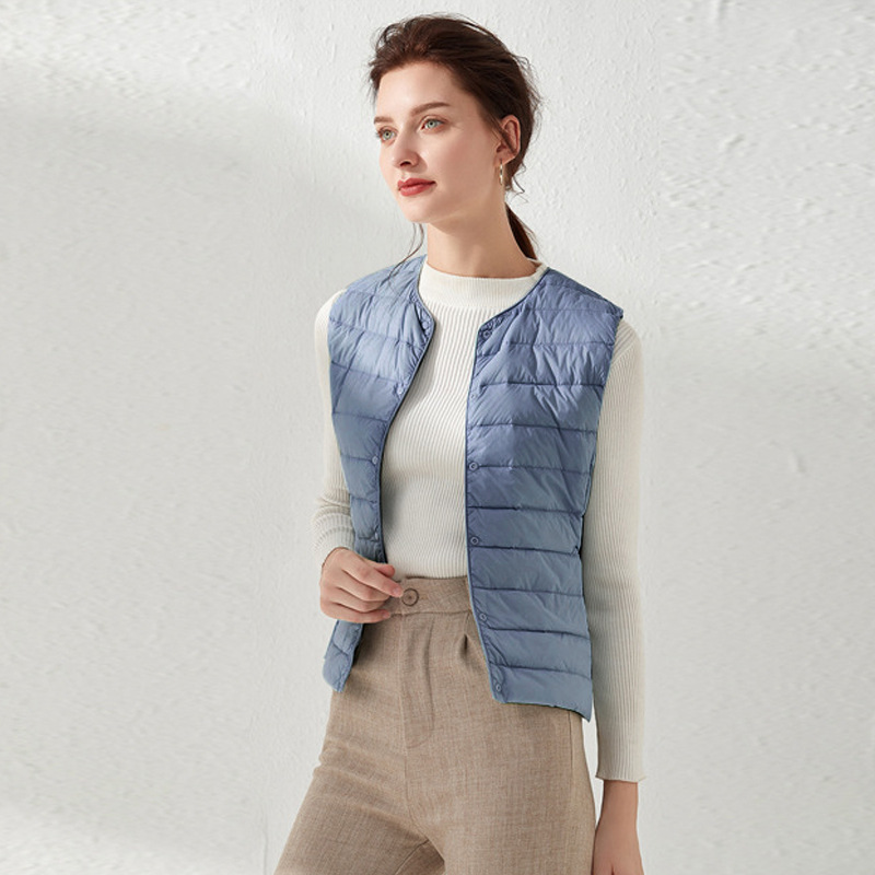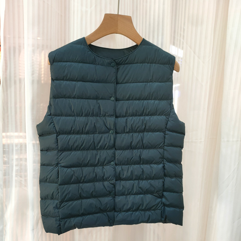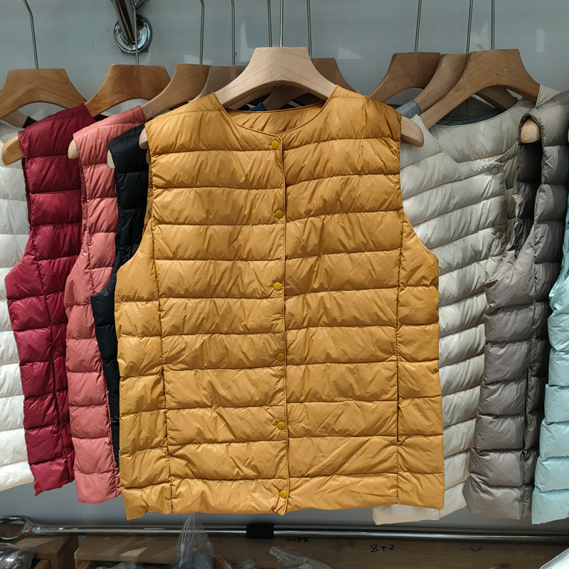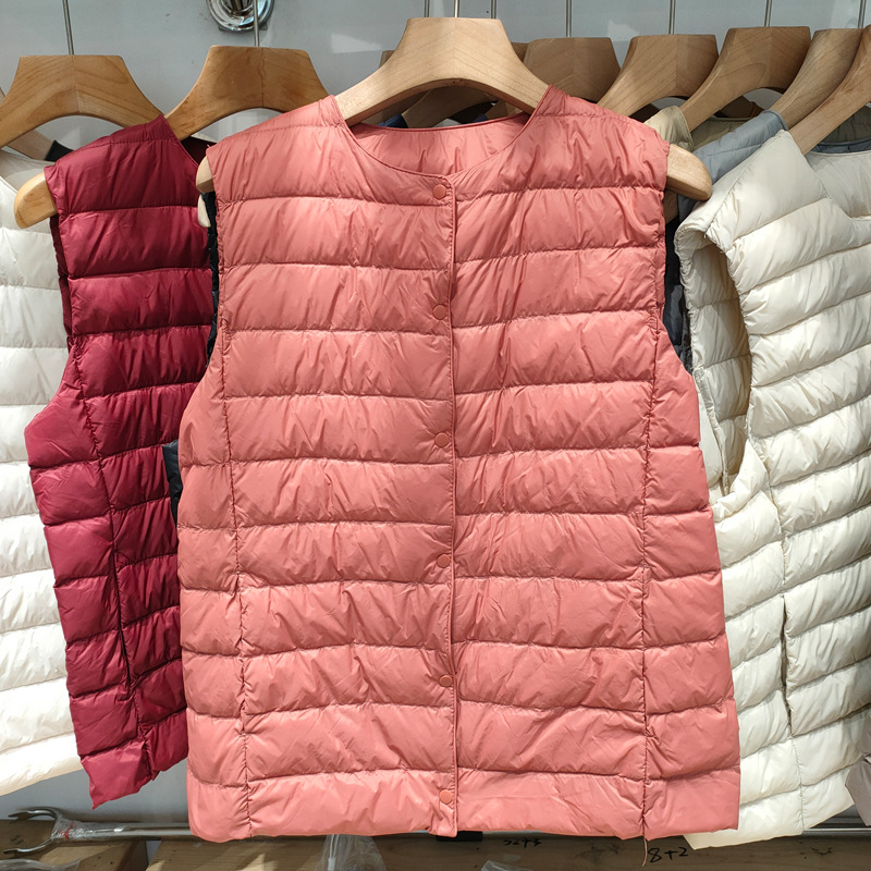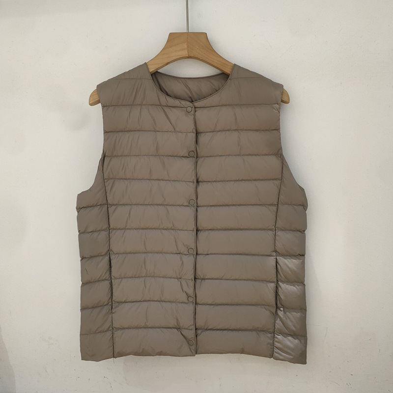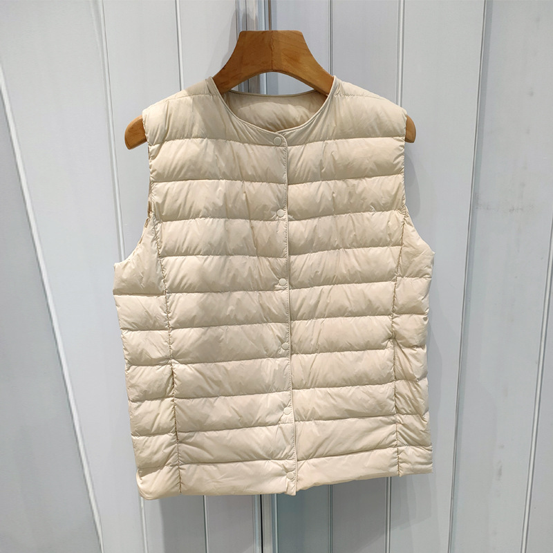 Женский пуховик нового стиля 2025 года, модный и универсальный, короткая корейская версия, без воротника, легкий, из белого утиного пуха, стильный.