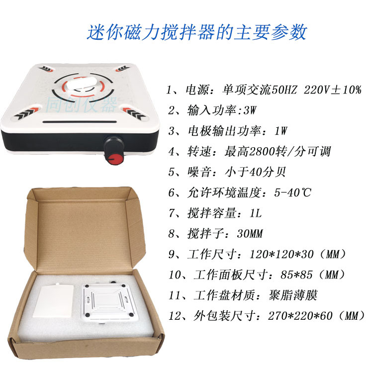 HJ-1s迷你磁力搅拌器 选用永磁式直流电机,具有增力功能,转速稳,连续可调,噪音小,其最大的特点是体积小、重量轻便于携带。