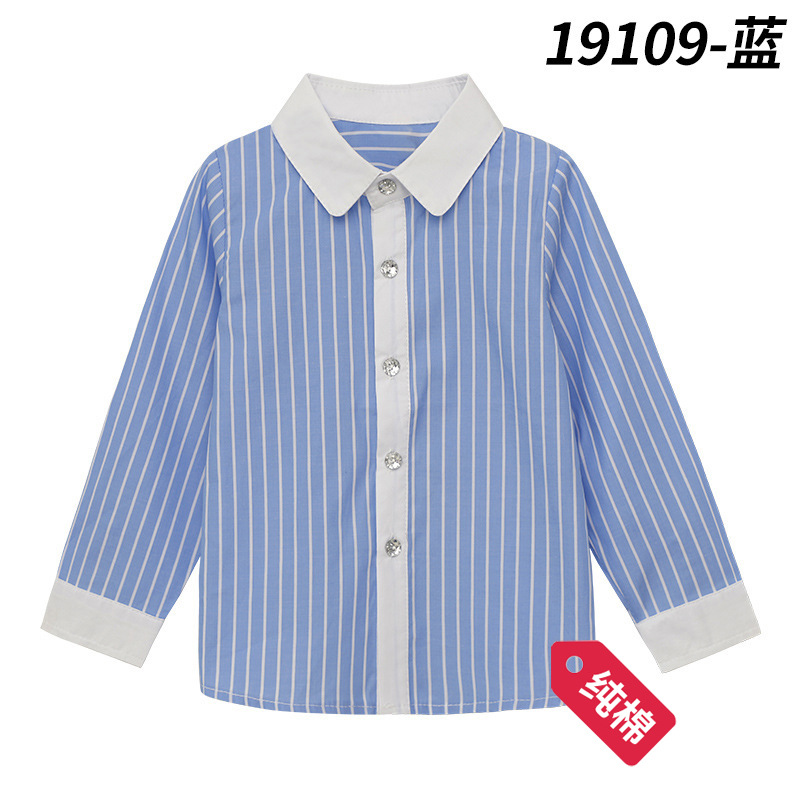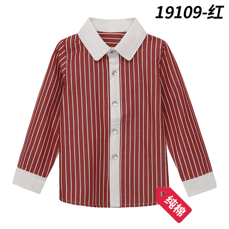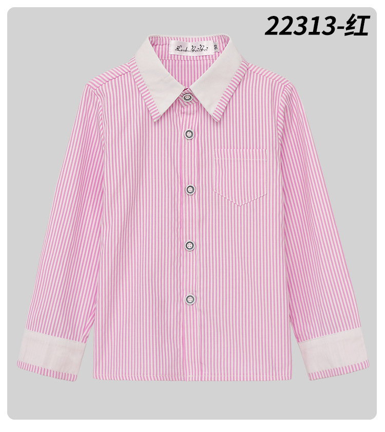 Детская рубашка в Корейском стиле Детская одежда в английском стиле Хлопковая красная и синяя полосатая рубашка с длинным рукавом Плиссированная рубашка для мальчиков и девочек Школьная форма на лето