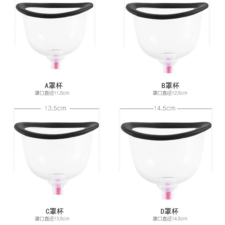 罩杯四个尺码:杯口直径 小号杯11.5cm 中号杯12.5cm 大号杯13.5cm 加大号杯14.5cm