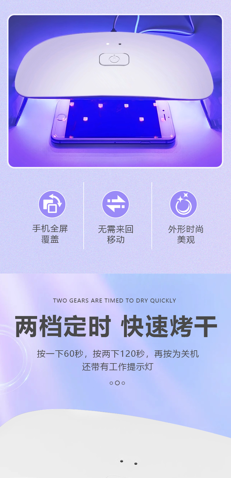 УФ-лампа для отверждения, мобильная лампа для пленки для телефона, носимая лампа для маникюра, лампа для сушки клея, освещение для твердой пленки, быстросохнущий УФ-фиолетовый свет