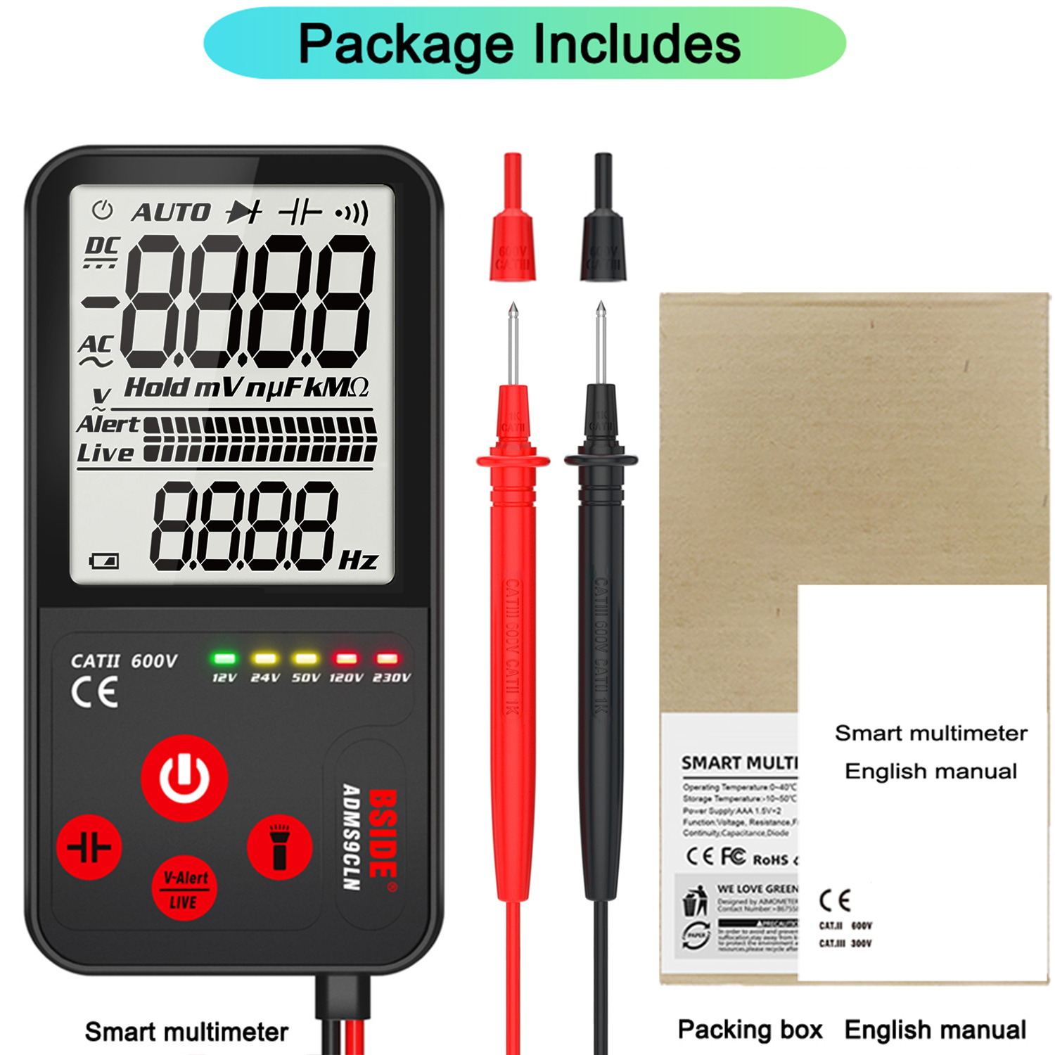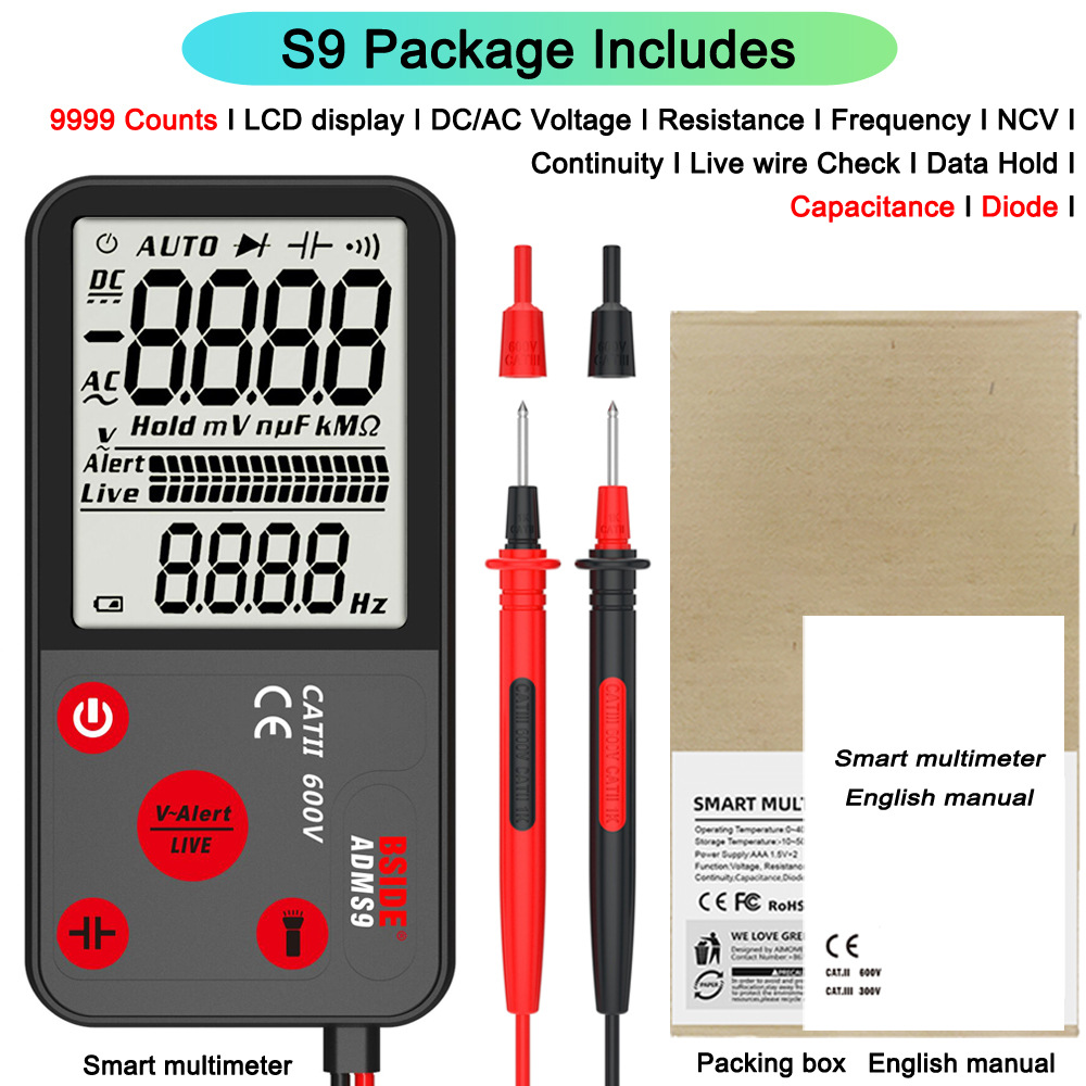 BSIDE ADMS9LN мультиметр с большим экраном, интеллектуальный полностью автоматический ультратонкий цифровой мультиметр-мультиметр