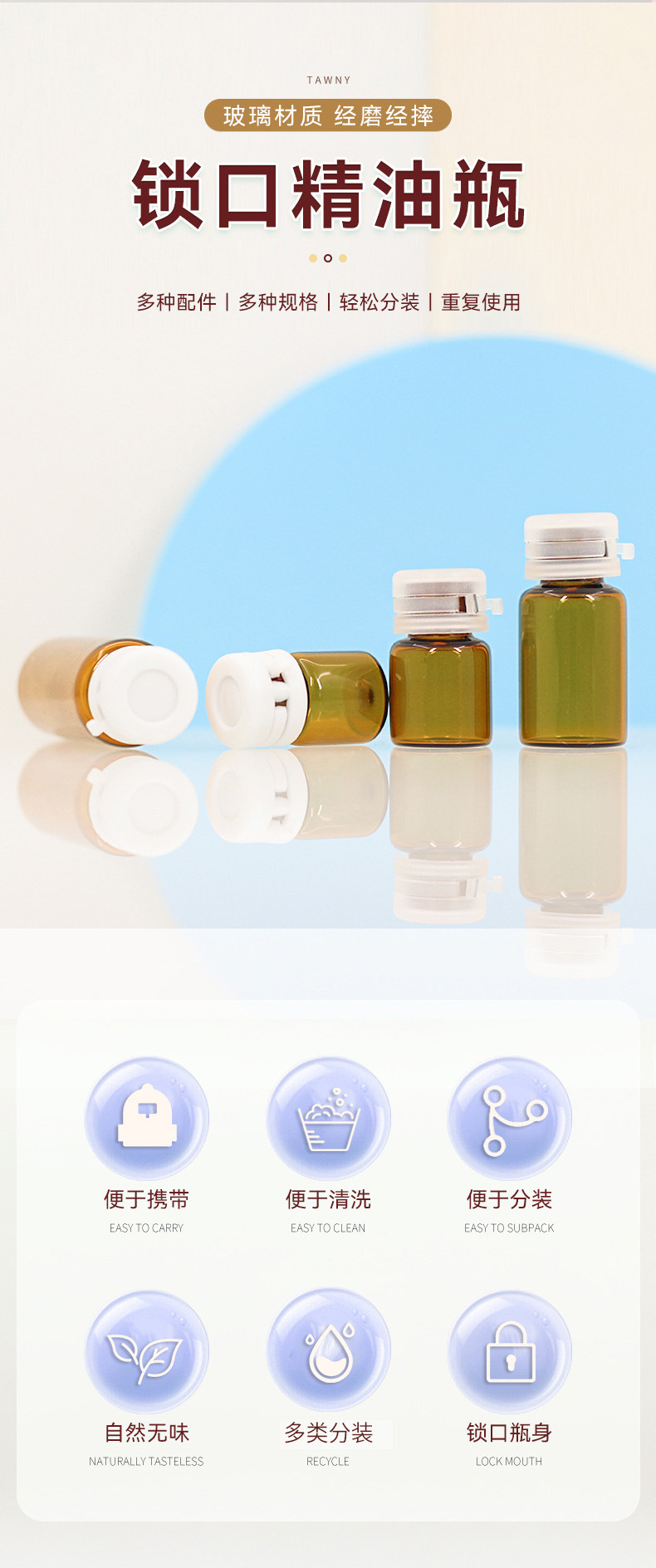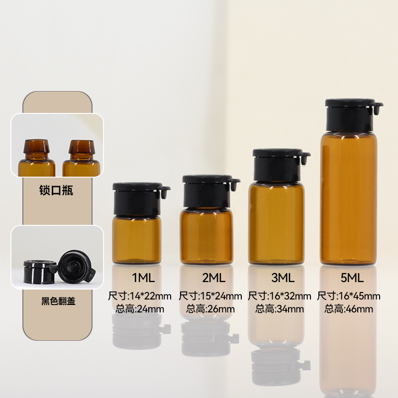 Коричневый флакон для духов из стекла, 5 мл, коричневый флакон для многоразового использования, 2 мл, с замком-зажимом, маленький флакон для эфирных масел