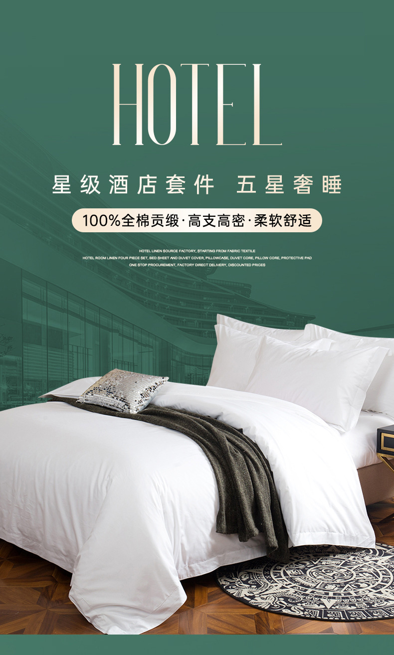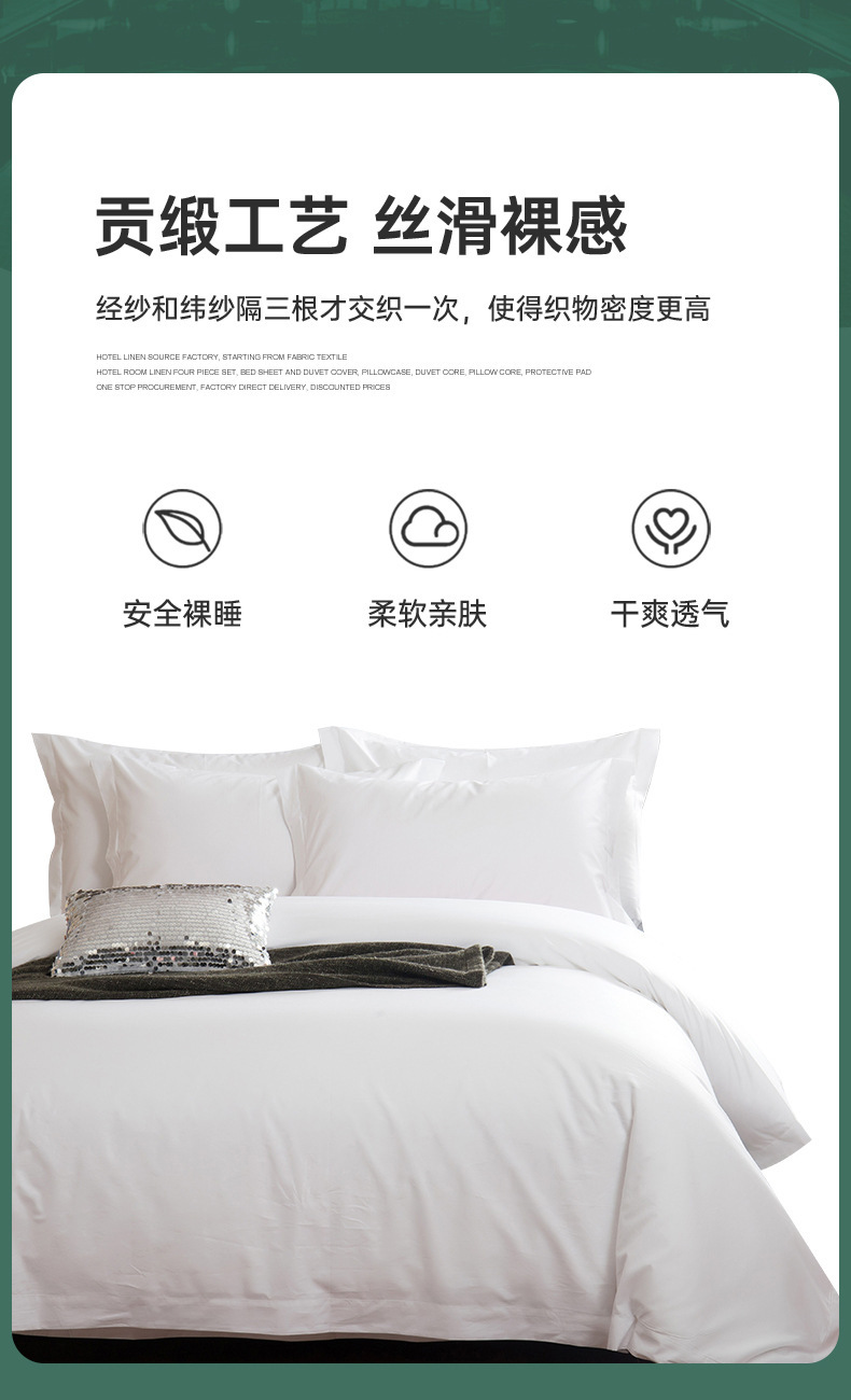 Постельный комплект из четырех предметов, 80-счетный чистый хлопок, пятизвездочный B&B, белый сатин, отельная постельная ткань от фабрики.