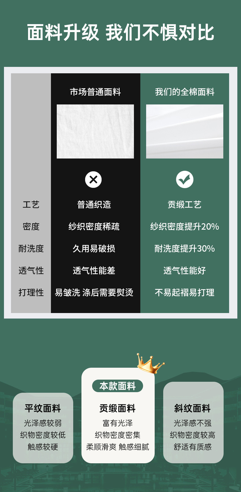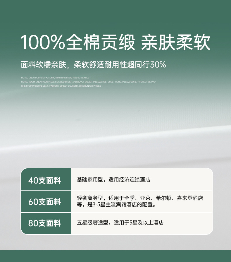 40*40 утолщенный струйный хлопок (Экспресс-отель); 60*40 струя хлопка (три звезды); 60*60 струя хлопка (четыре звезды); 60*80 струй хлопка (Пять звезд)