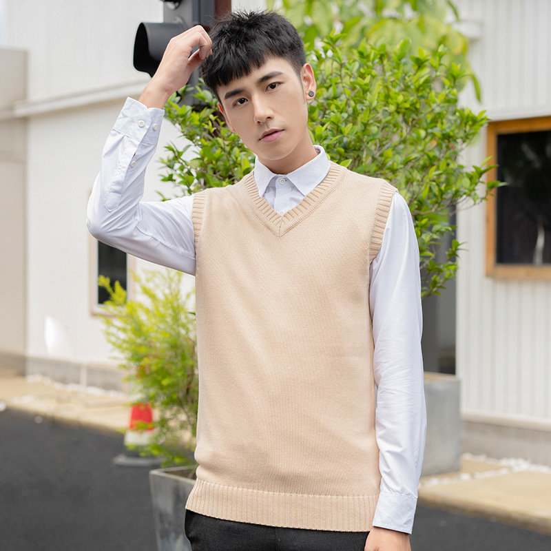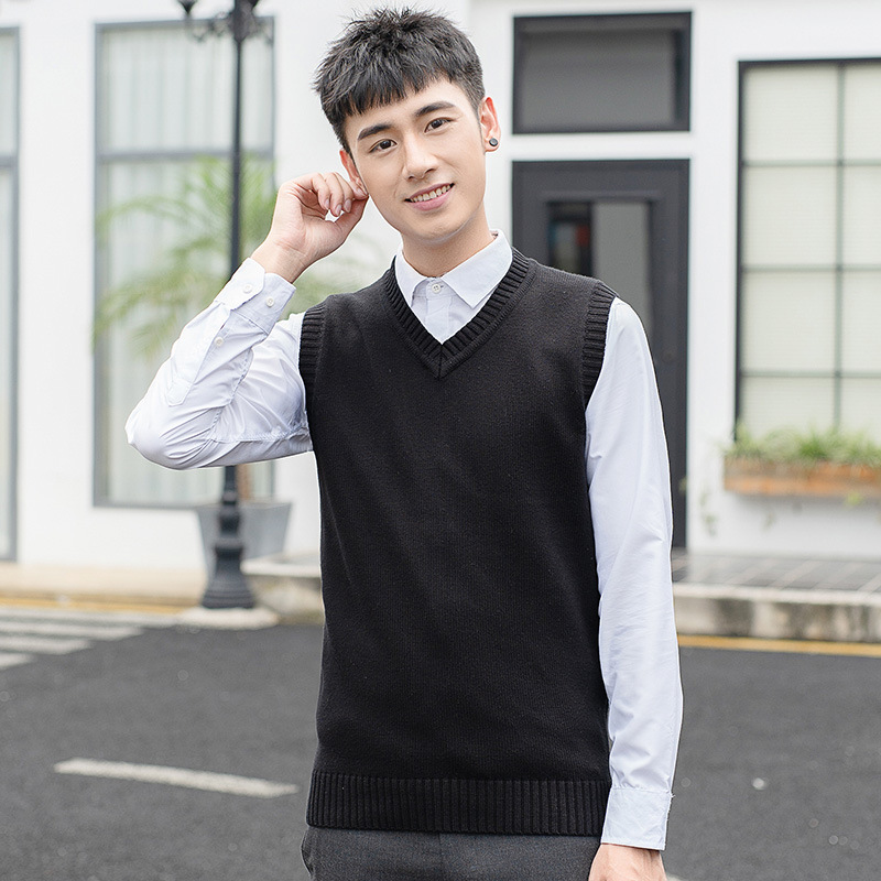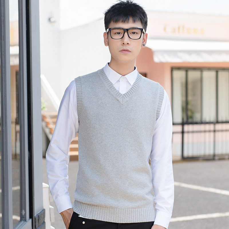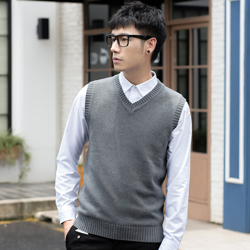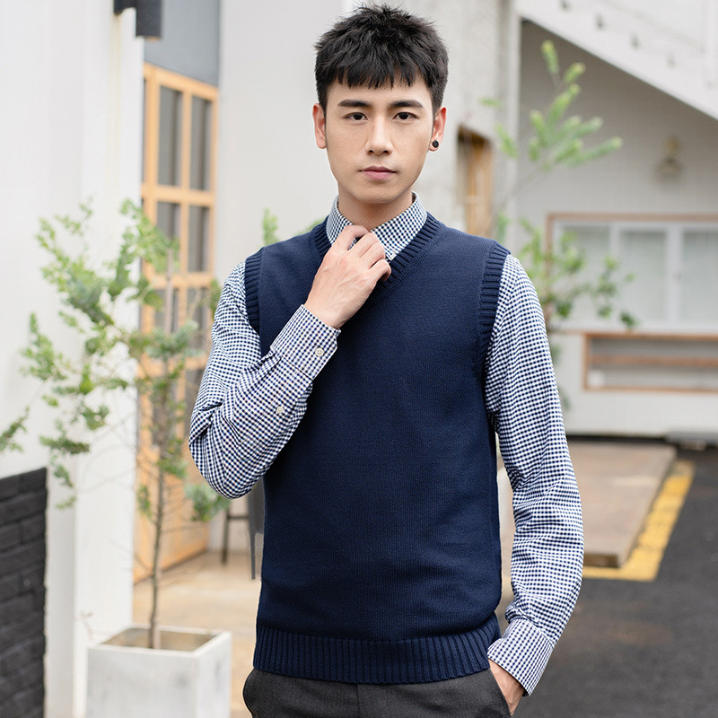 Мужской вязаный шерстяной жилет Свитер без рукавов для мальчиков с V-образным вырезом Пуловер Жилет Повседневный деловой простой однотонный хлопковый свитер