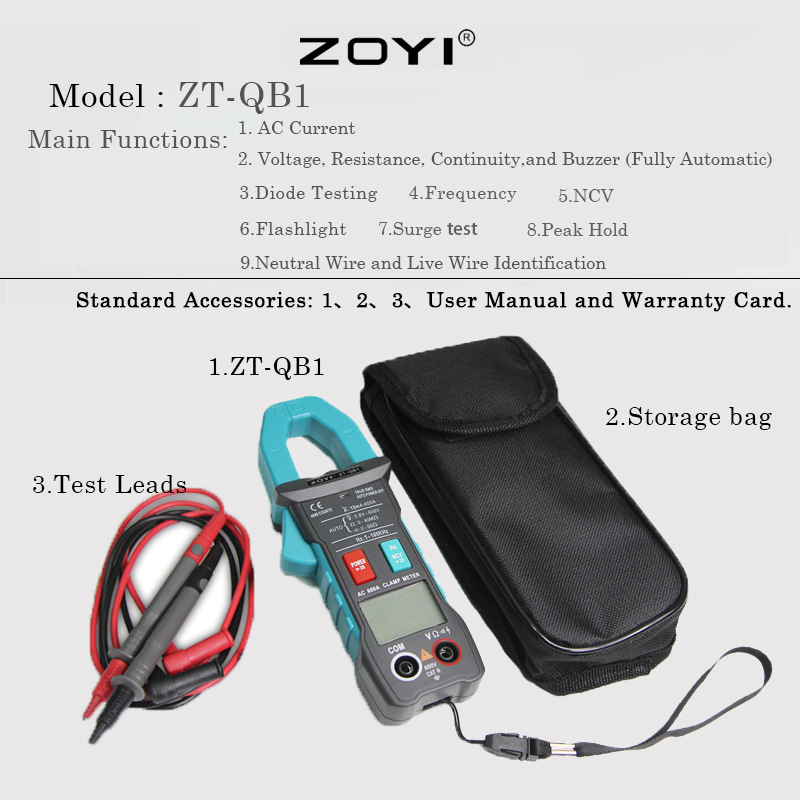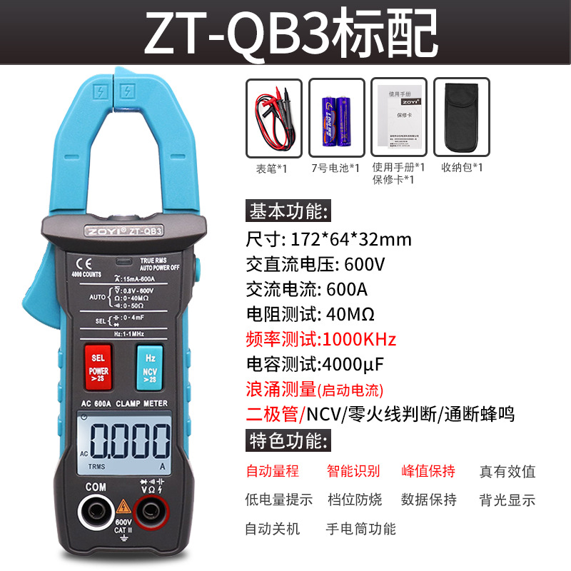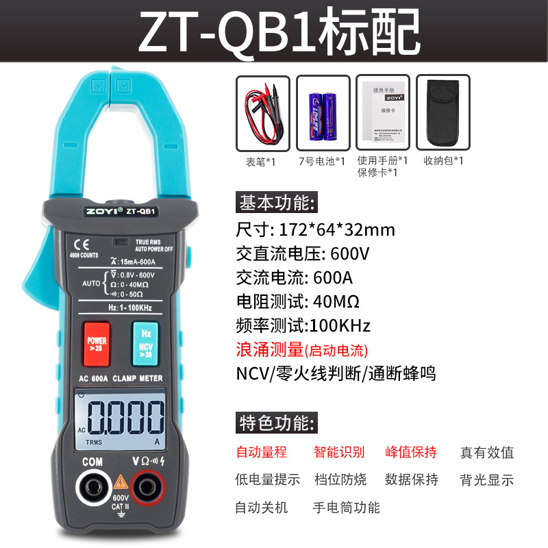 Zhongyi полностью автоматический плоскогубчатый ZT-QB1/QB9/QB4 переменный ток ток цифровой зажим мультиметр высокой точности