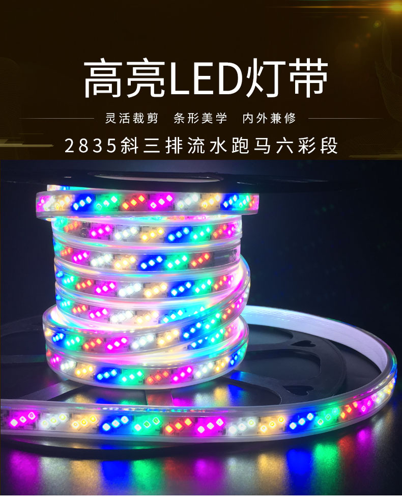 Светодиодный ремень 2835 наклонный три ряда 144 огни шесть цветных 48 ламп проточной воды 96 ламп переменной света вспышка мягкой световой полосы