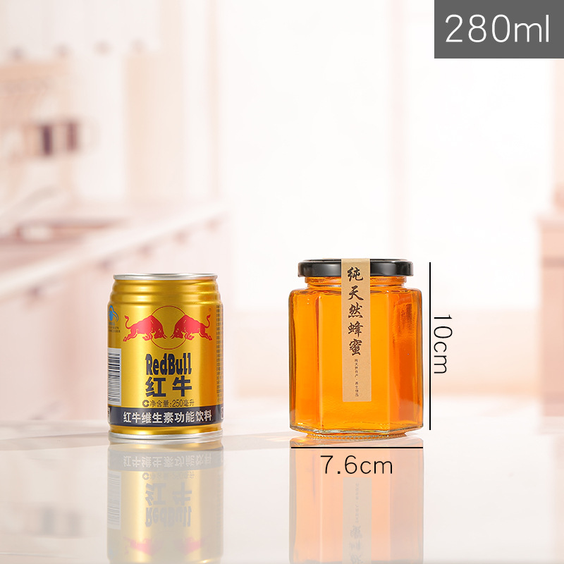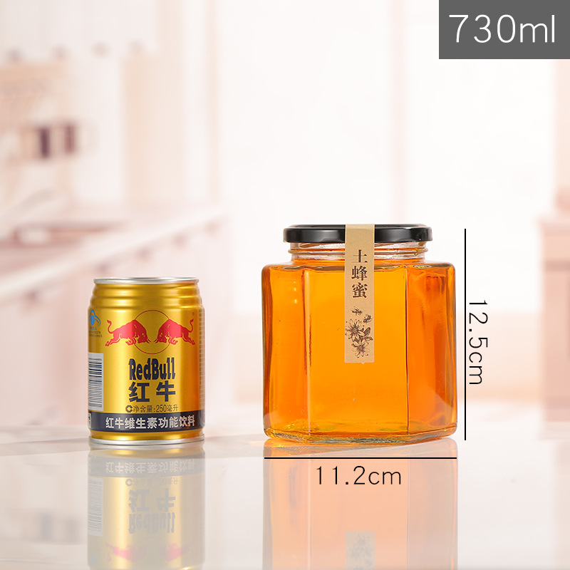 380 мл шестиугольная стеклянная бутылка для меда с высокой температурой ЗАГЕРМЕТИЗИРОВАННАЯ банка для соленья 1 кг медовая пищевая упаковка для соуса чили