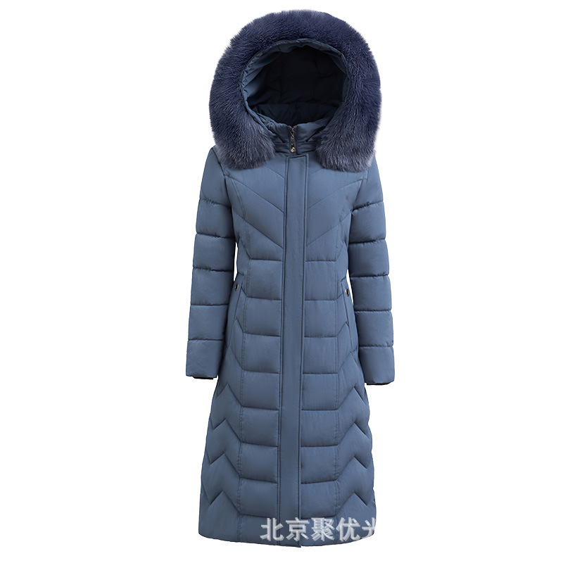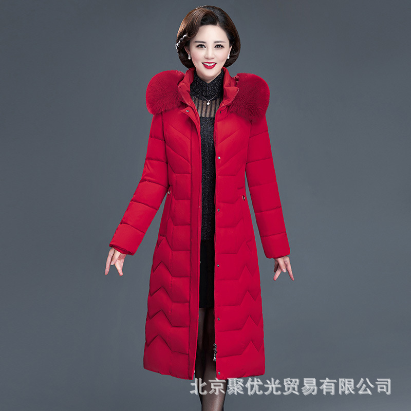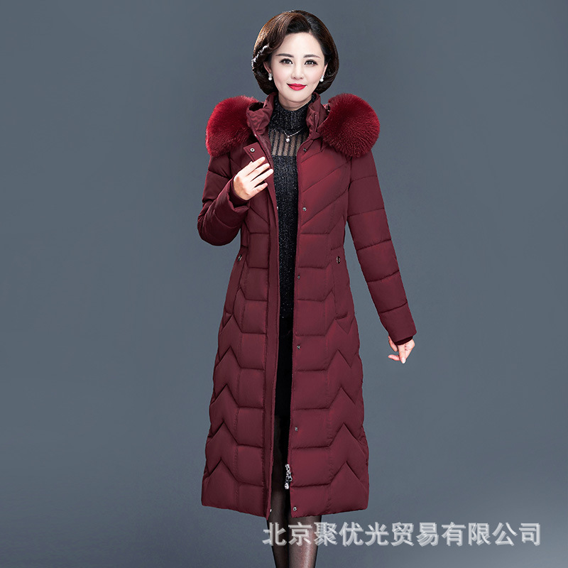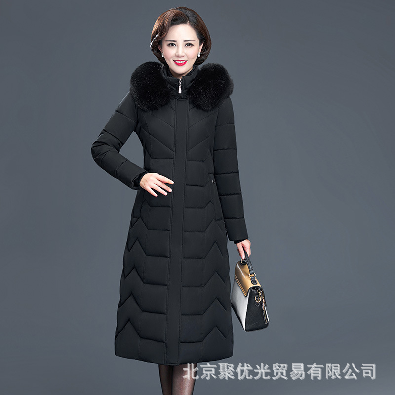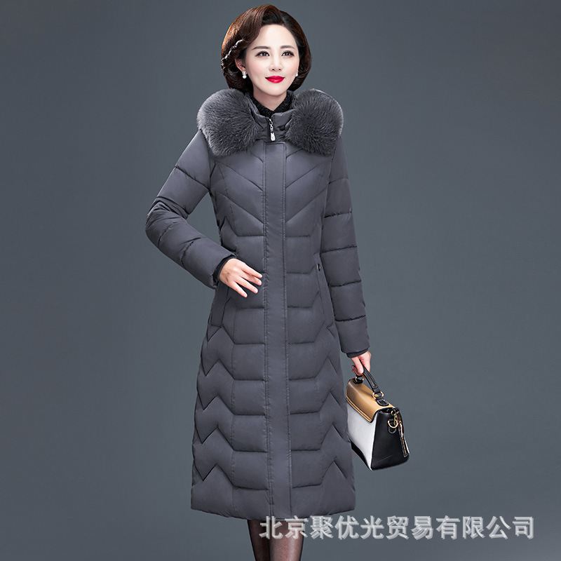 Женская длинная пуховая куртка с хлопковой подкладкой для среднего и пожилого возраста, новинка зимы 2019, приталенное универсальное приталенное пальто с большим меховым воротником и меховым воротником