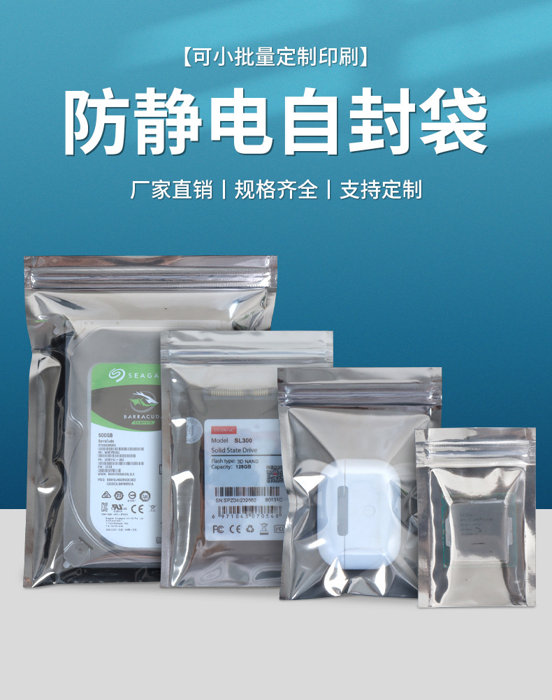 Антистатические пакеты на заказ, тщательно отобранные и изготовленные по индивидуальному заказу, пластиковые пакеты для герметизации электронных компонентов, пакеты для герметизации материнских плат, антистатические самозапечатывающиеся пакеты.