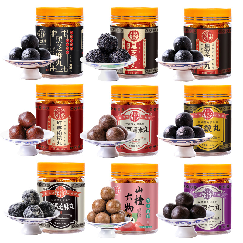 Черный кунжут Девять на пару Девять солнцезащитного молока Кальций Черные кунжутные таблетки ручной работы Медовые таблетки из красной фасоли и семян коикса Пять красных таблеток